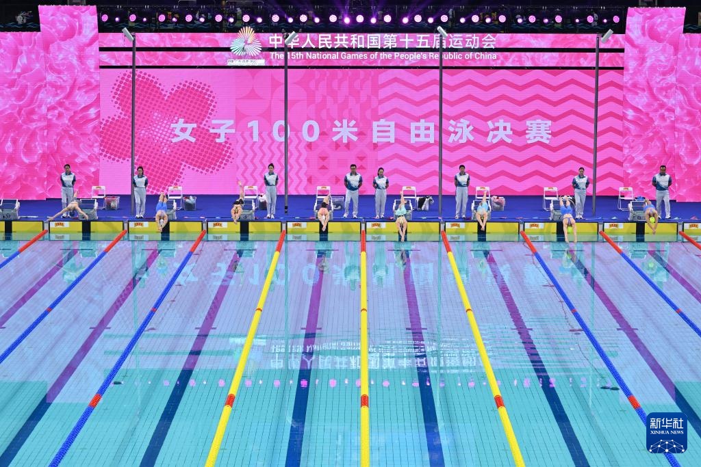 当日,第十五届全国运动会游泳女子100米自由泳决赛在广东省深圳市举行。
