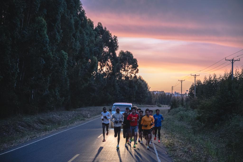 高原训练的效果逐渐显现。在埃尔多雷特,每周有一次集体长距离课:来自不同训练营的跑者会同时出发,完成40公里。“第一年,何杰只能跑在第三梯队。第二年,他已经能跟上第二梯队了。”肖丽回忆道。
