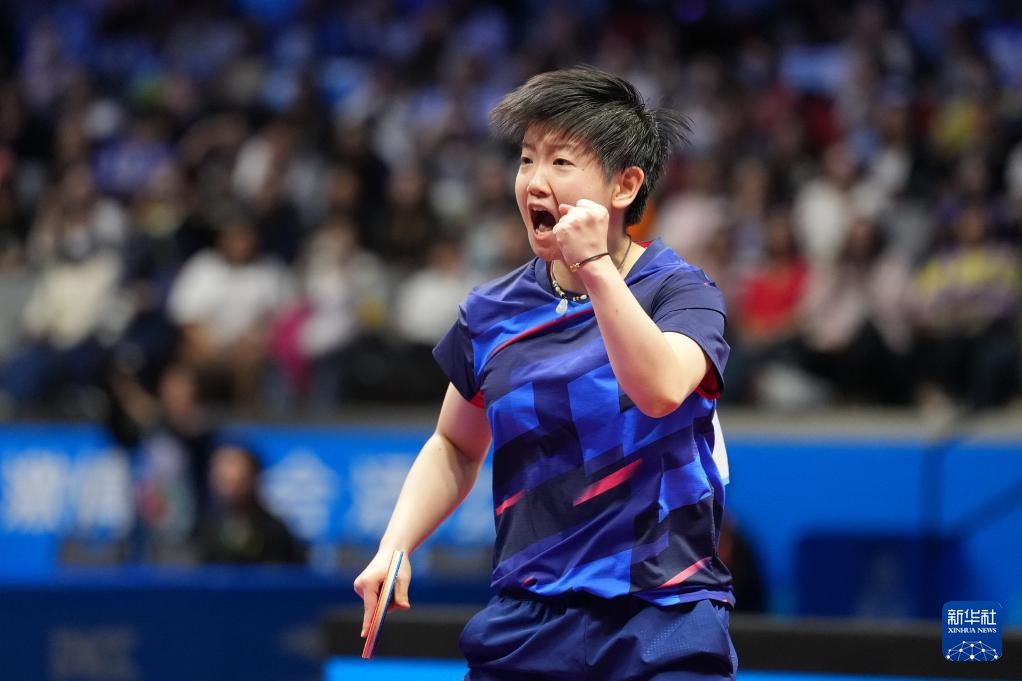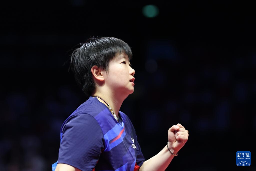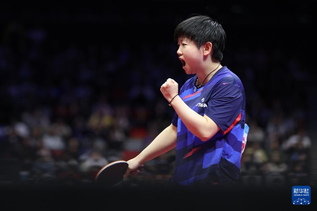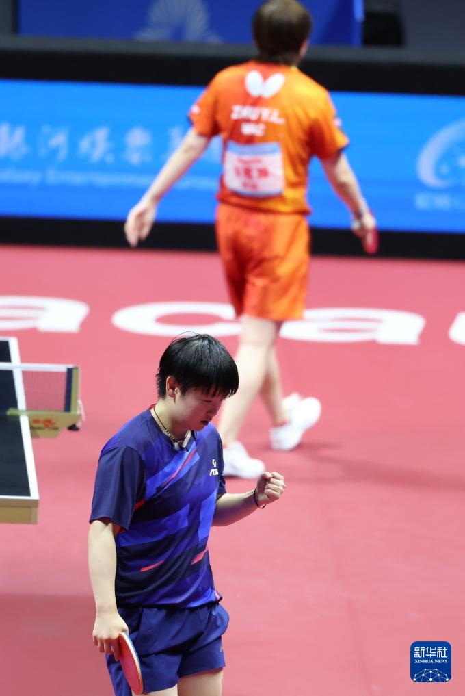 11月15日,河北队选手孙颖莎在比赛中庆祝。