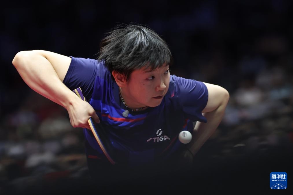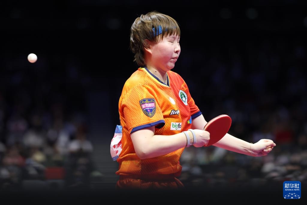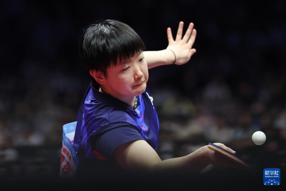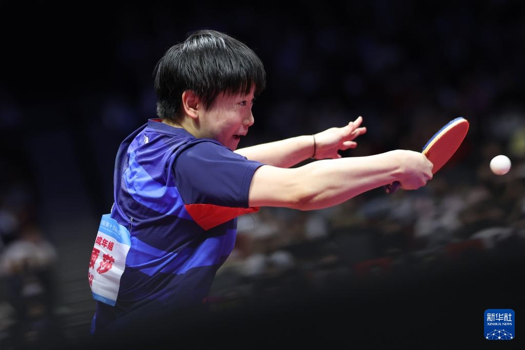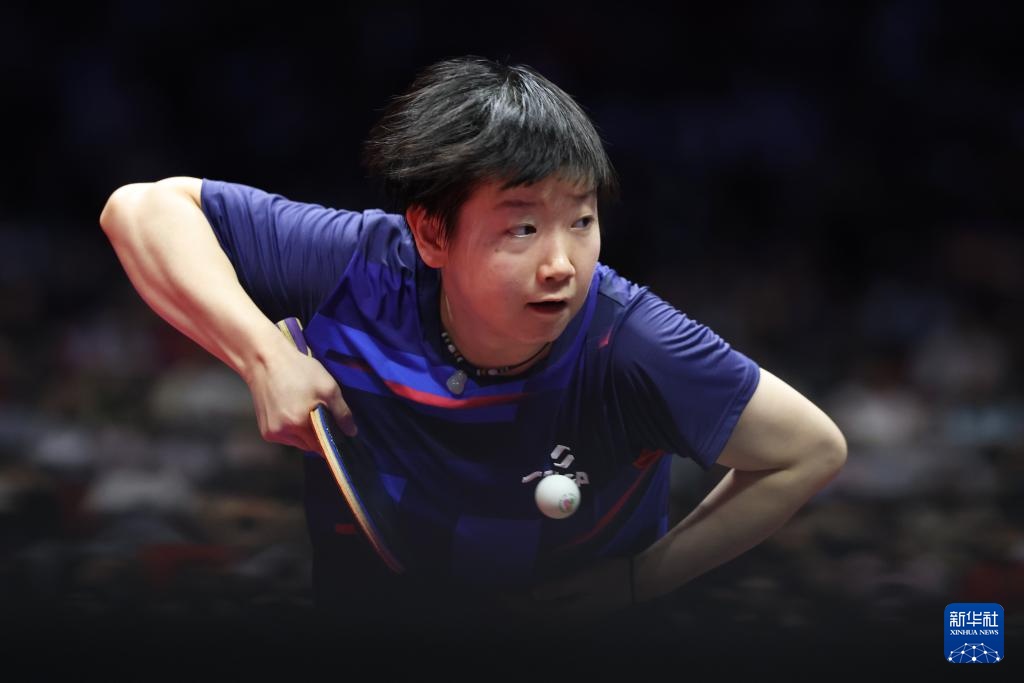 11月15日,河北队选手孙颖莎在比赛中回球。