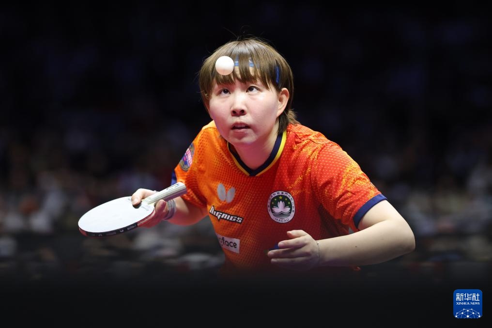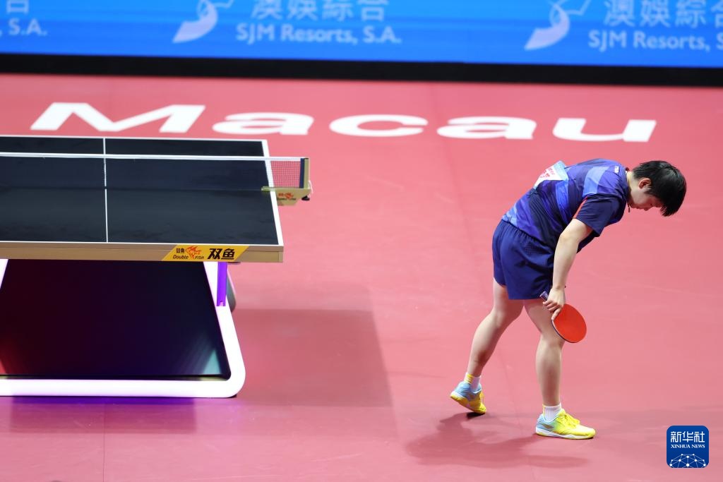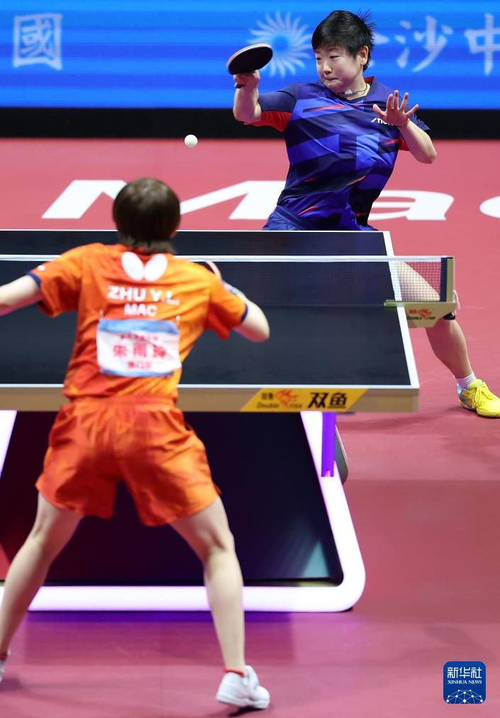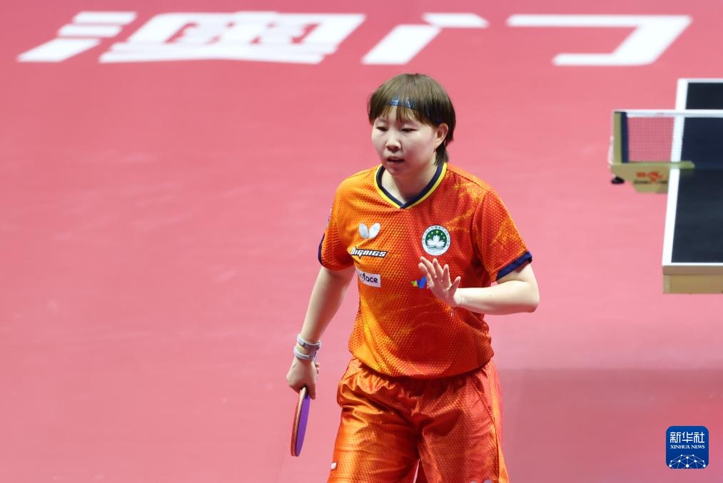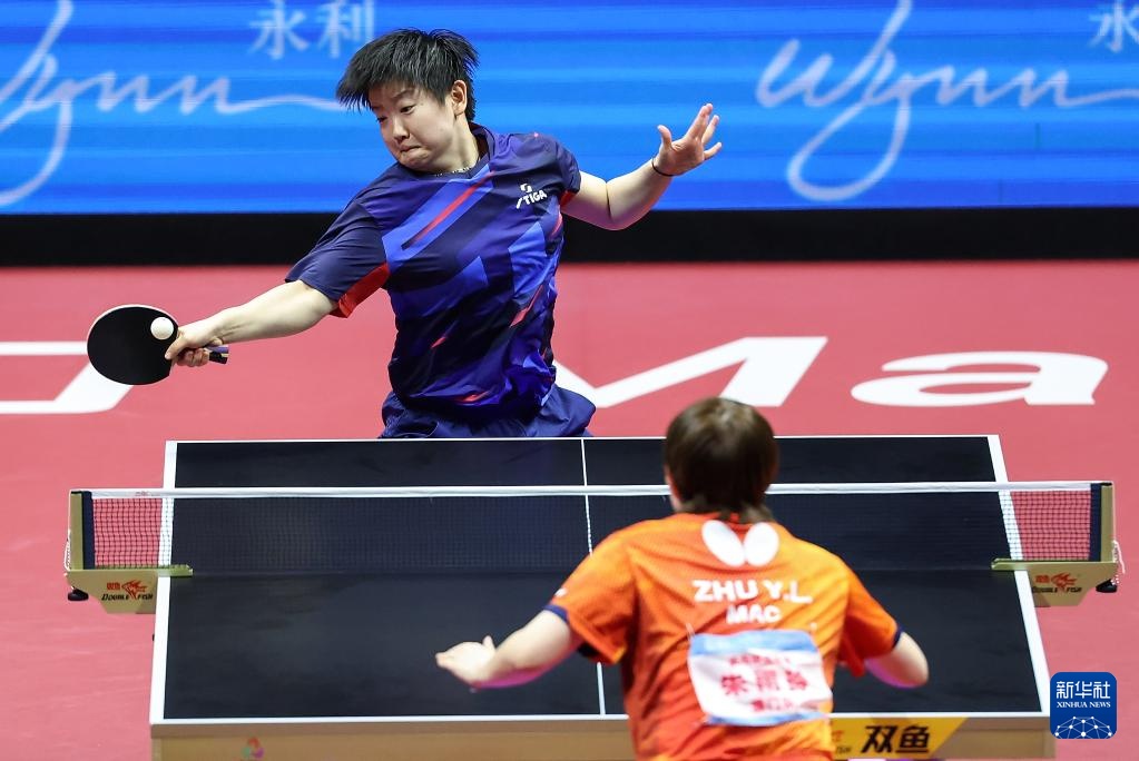 11月15日,澳门队选手朱雨玲在比赛中回球。