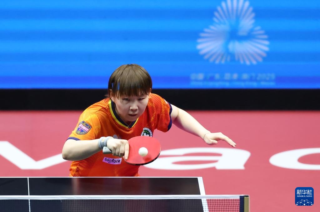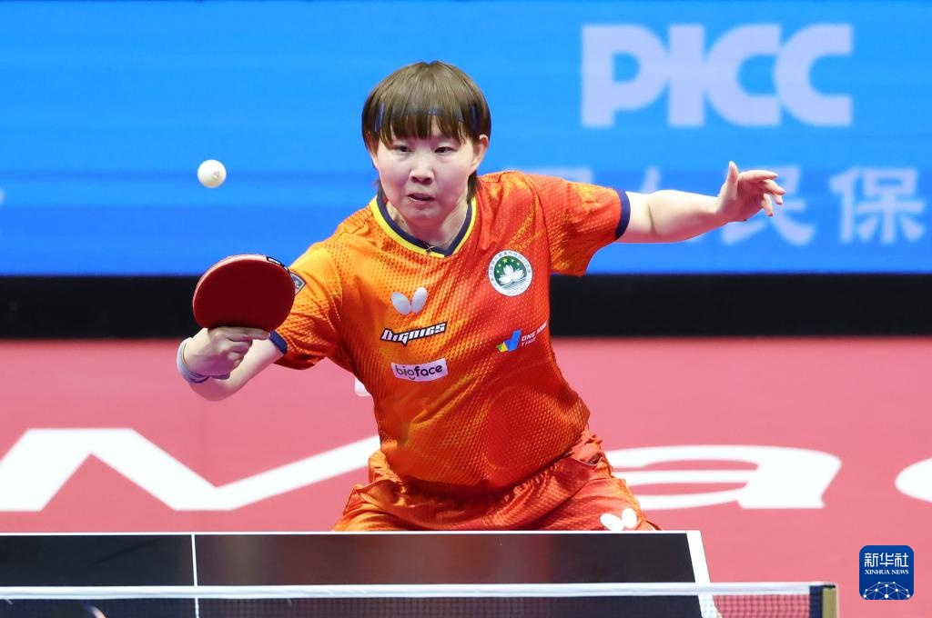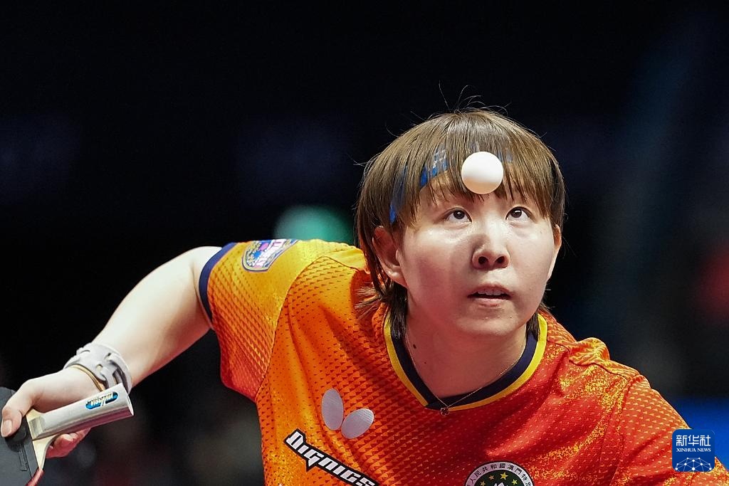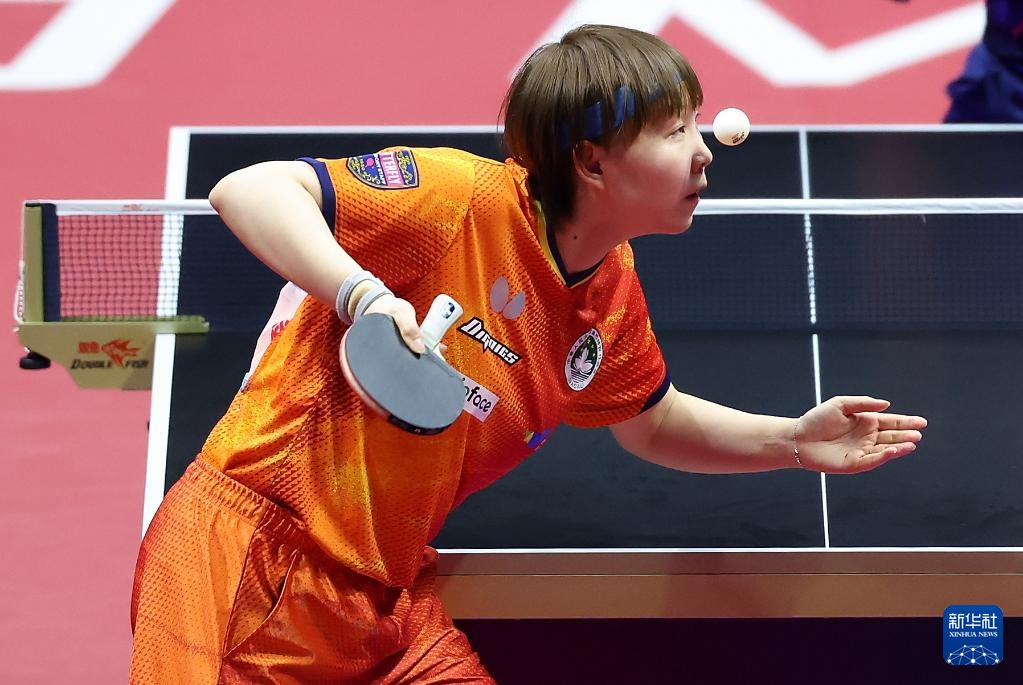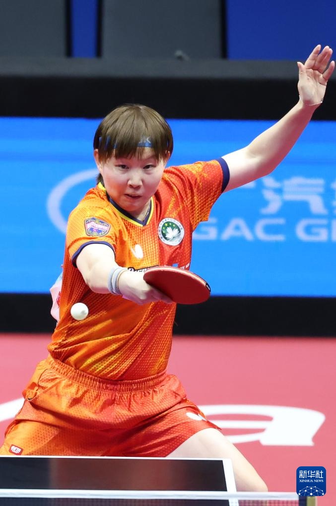 11月15日,澳门队选手朱雨玲在比赛中回球。