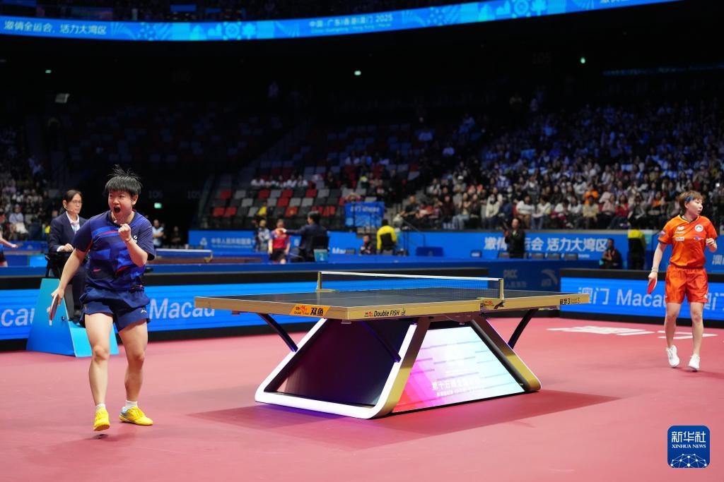 当日,在澳门进行的第十五届全国运动会乒乓球女子单打半决赛中,河北队选手孙颖莎4比1战胜澳门队选手朱雨玲,晋级决赛。