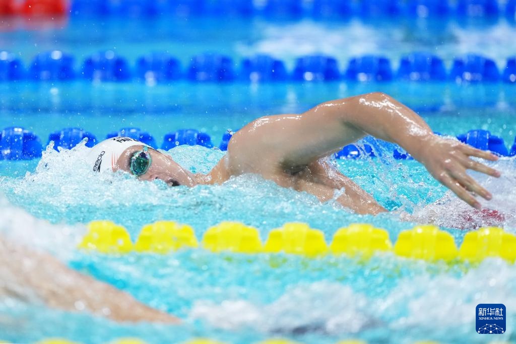 11月15日,浙江队第三棒选手潘展乐在比赛中。最终,浙江队获得亚军。