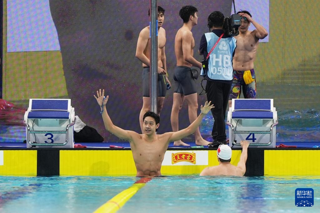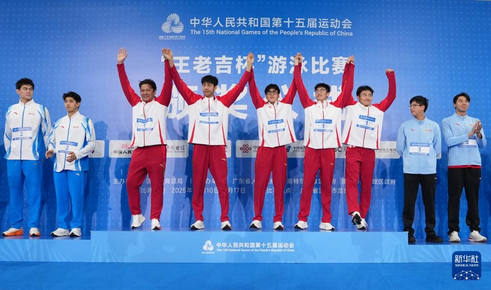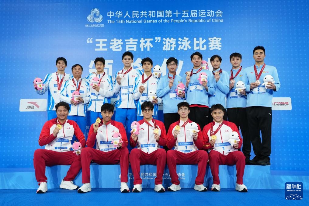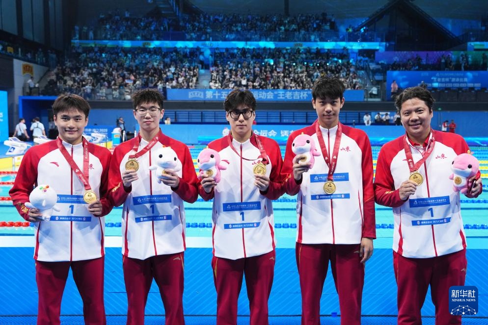 当日,第十五届全国运动会游泳男子4X200米自由泳接力决赛在广东省深圳市举行。