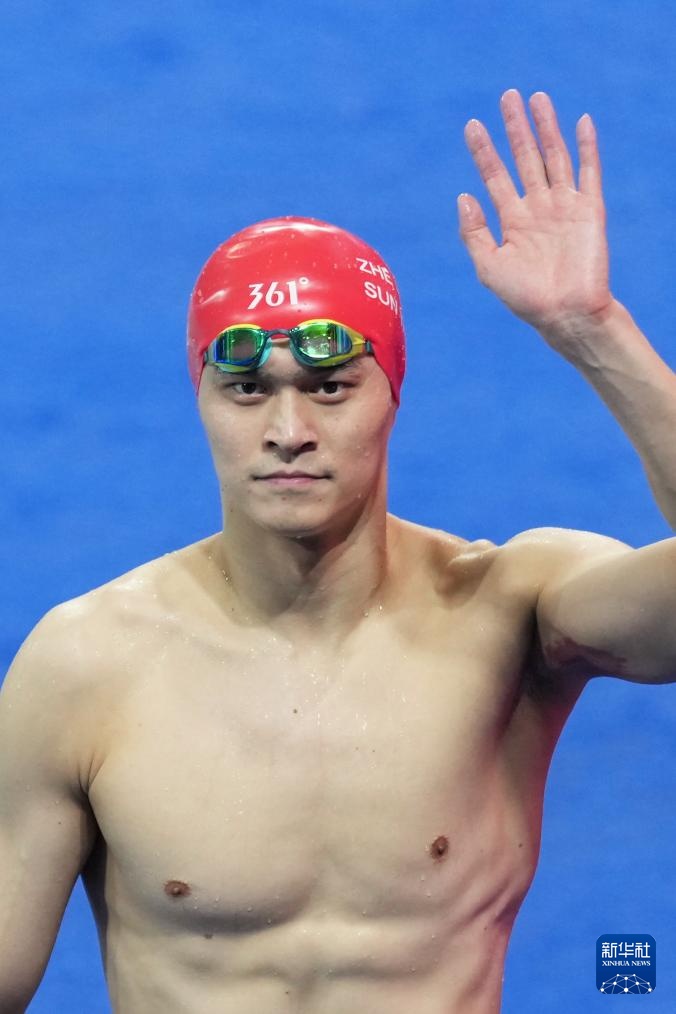 11月15日,浙江队选手孙杨在比赛后向观众致意。浙江队获得亚军。