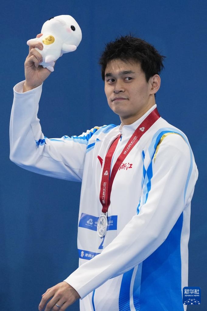 11月15日,浙江队选手孙杨在颁奖仪式后。浙江队获得亚军。