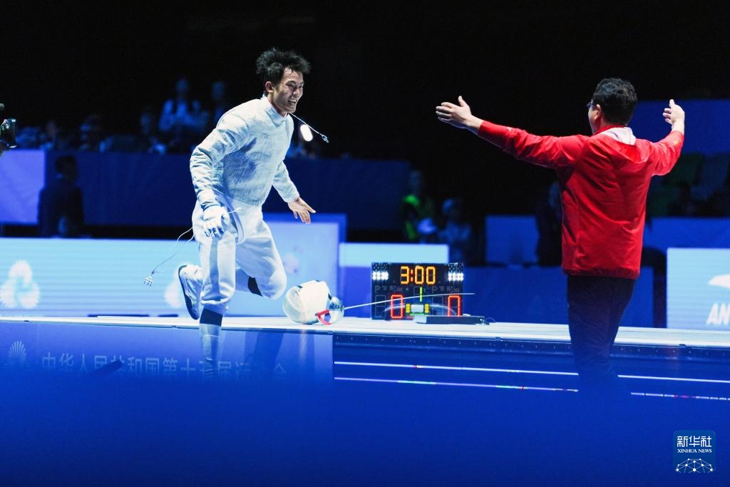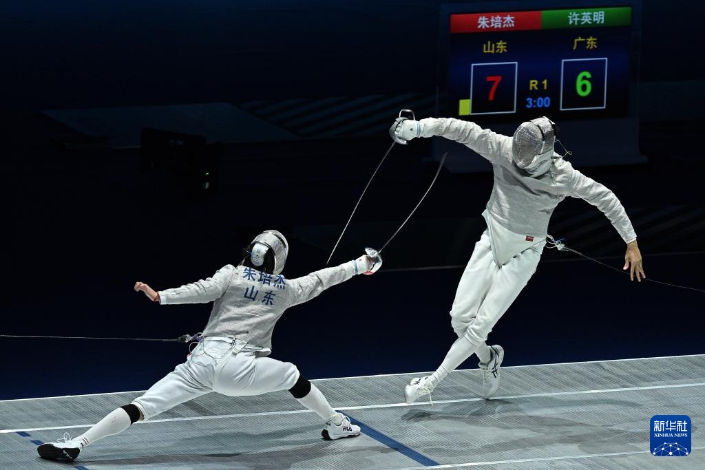 当日,在香港举行的第十五届全国运动会男子佩剑个人铜牌赛中,山东队选手朱培杰15比11战胜广东队选手许英明,摘得铜牌。