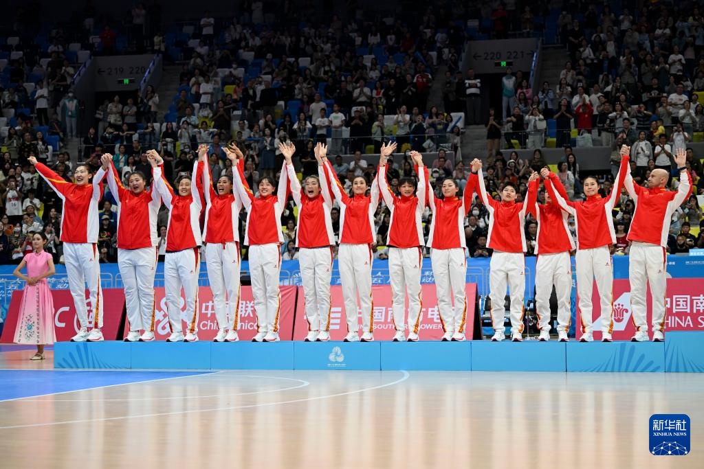 11月15日,亚军四川队在颁奖仪式上庆祝。