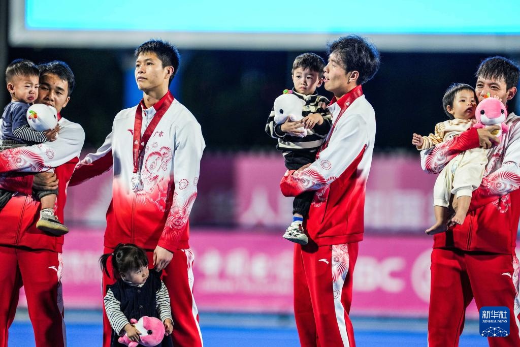 11月15日,广东队选手和亲属共同参加颁奖仪式。