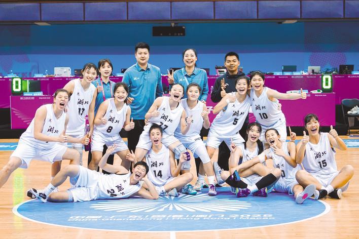 战胜了曾遥不可及的湖南队,湖北U18女篮乐不可支。 (受访单位供图)