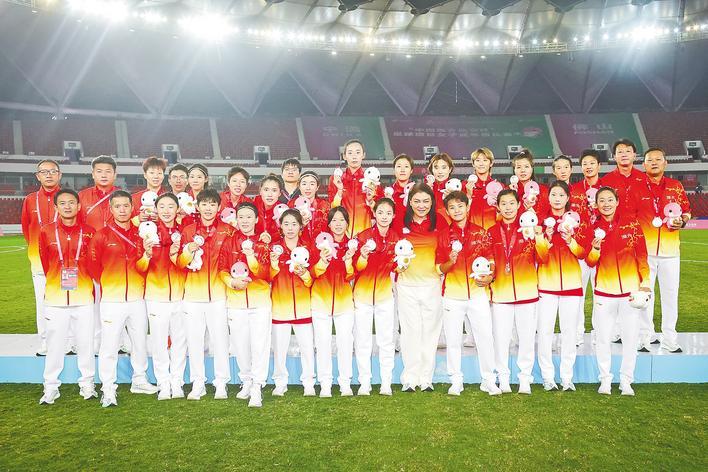 获得十五运会成年组亚军的湖北女足创造了历史。 (湖北日报全媒记者 时龚 摄)