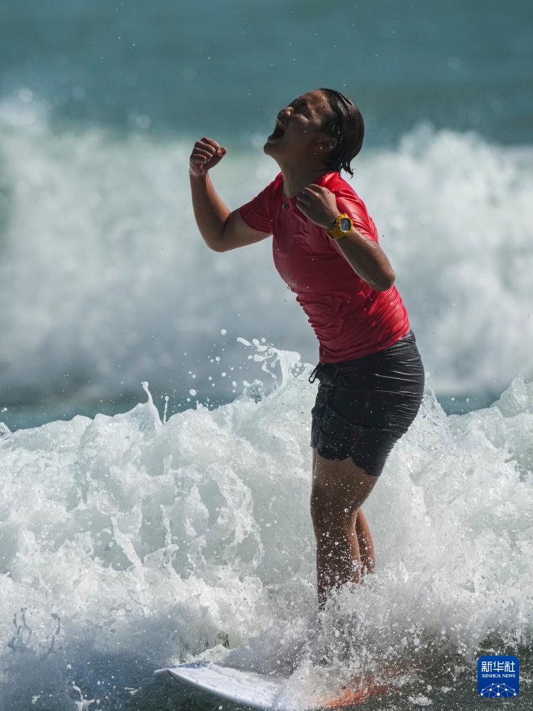当日,在广东南澳举行的第十五届全国运动会冲浪女子短板决赛中,四川队选手杨思琪战胜辽宁队选手金姝含,夺得冠军。