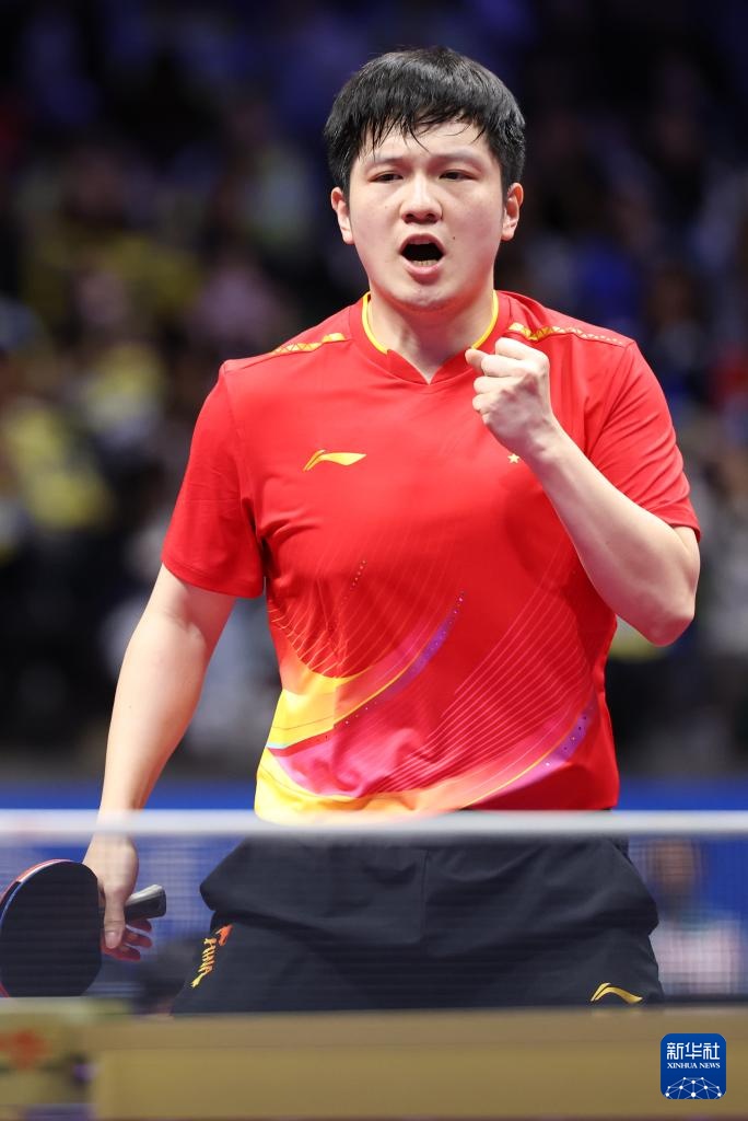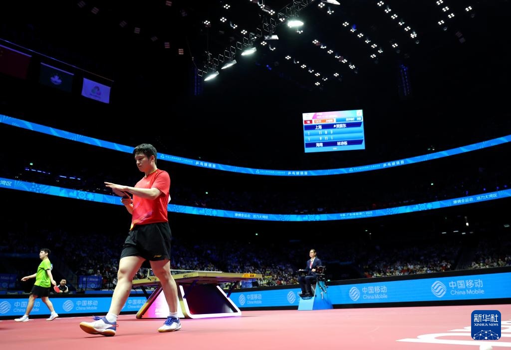 当日,第十五届全国运动会乒乓球男子单打金牌赛在澳门举行,上海队选手樊振东对阵海南队选手林诗栋。