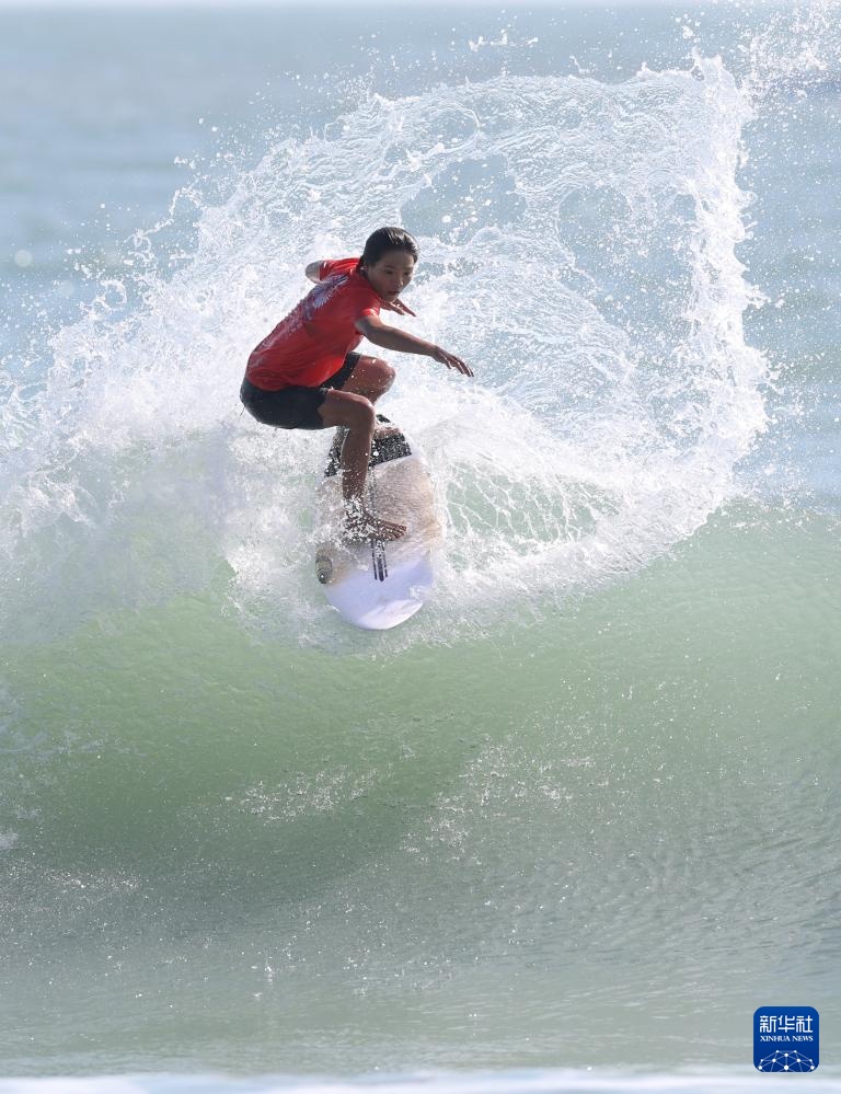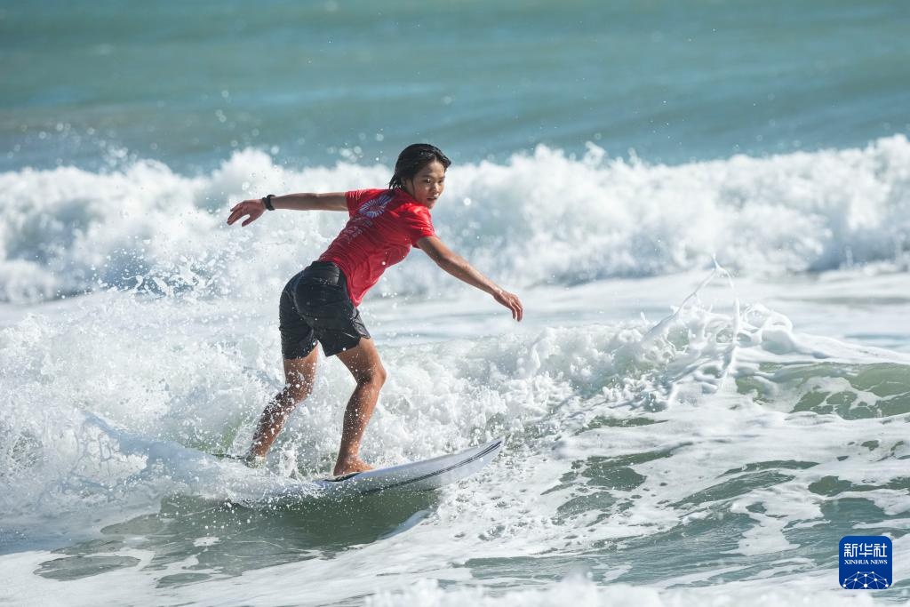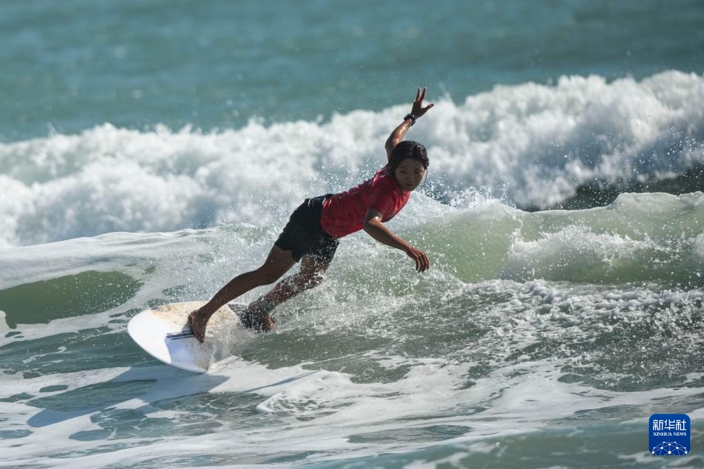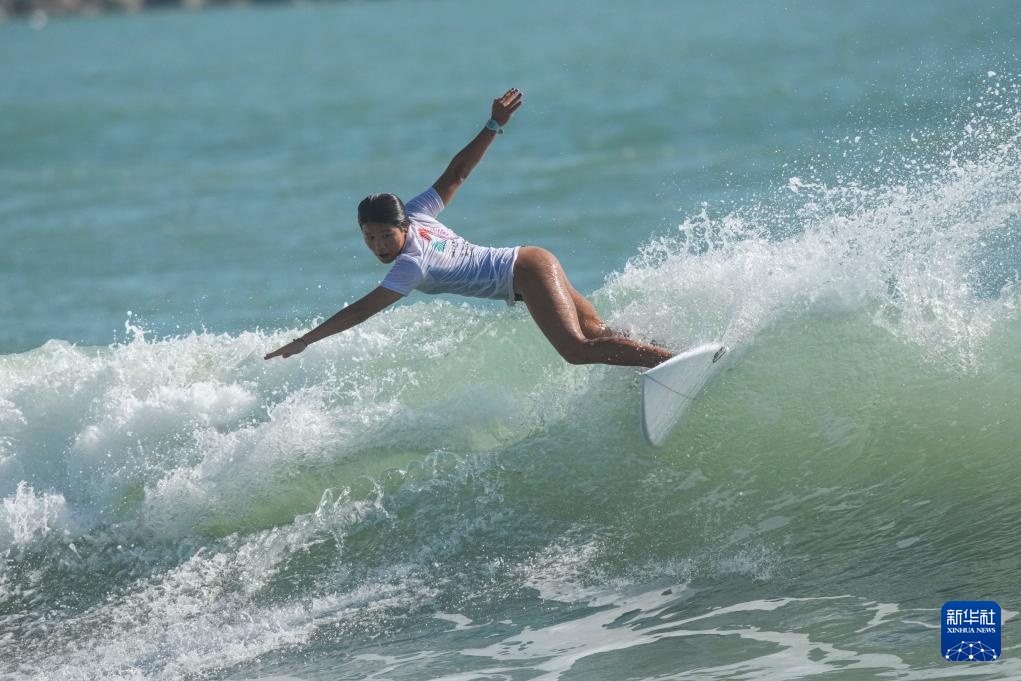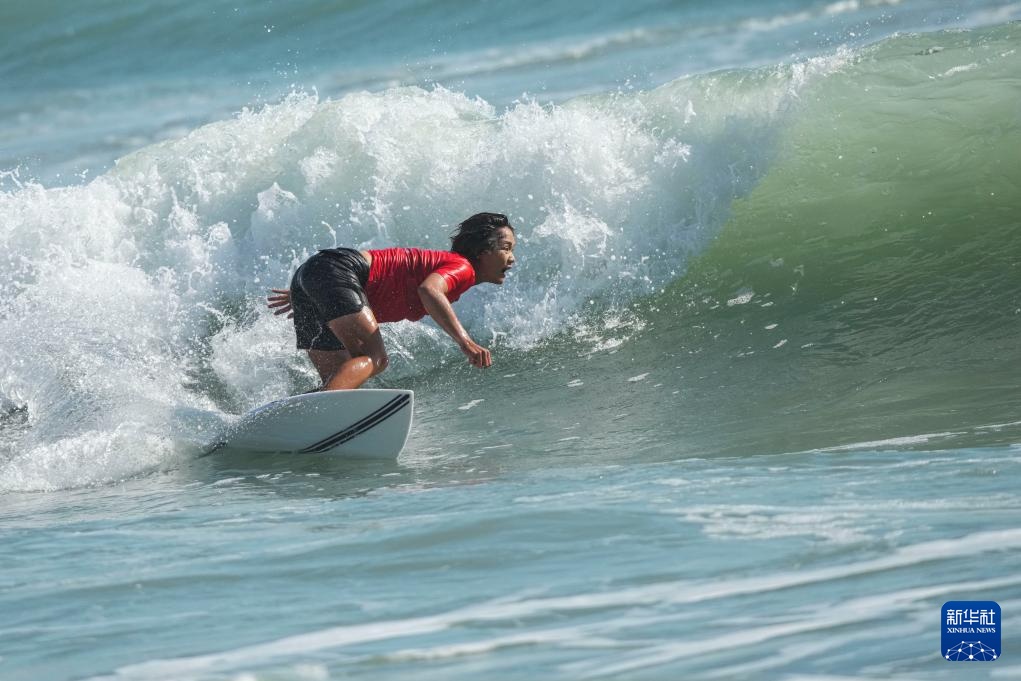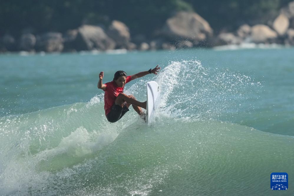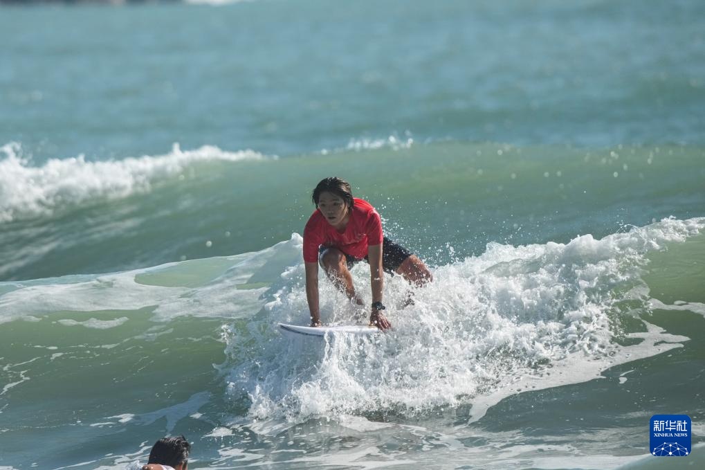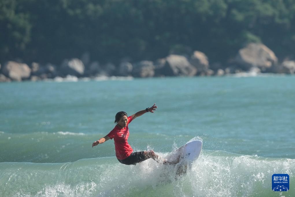 当日,在广东南澳举行的第十五届全国运动会冲浪女子短板铜牌赛中,海南队选手邓雪莹战胜四川队选手张雨婷,获得铜牌。