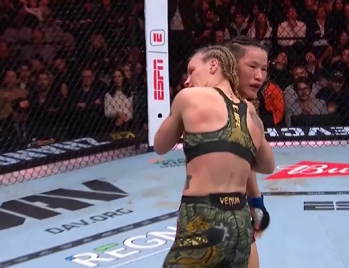 此番张伟丽放弃了草量级金腰带,升重10磅与舍甫琴科对决,两人打满五回合,最终张伟丽一致判定不敌对手,舍甫琴科成功卫冕金腰带。