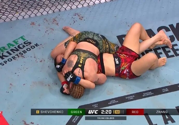 第四回合,舍甫琴科开始在站立中变得更为主动,压迫伟丽,前几回合57%的打击远超伟丽的21%,最后一分多钟,伟丽高扫被对手抱摔,比赛再次回到舍甫琴科地面控制伟丽。