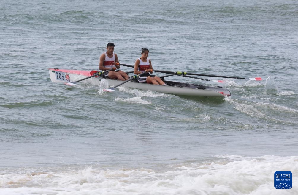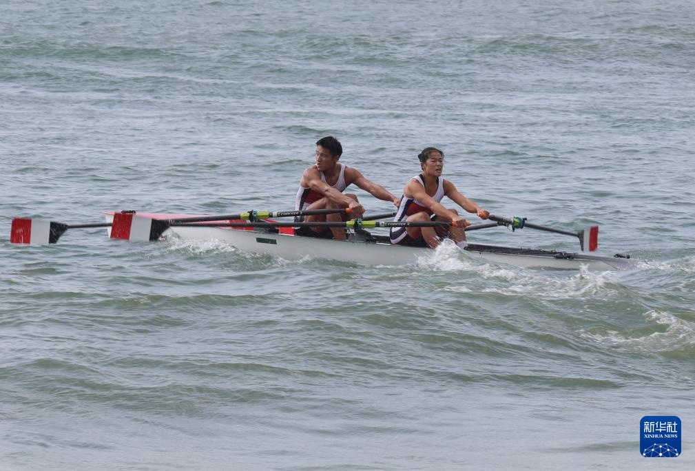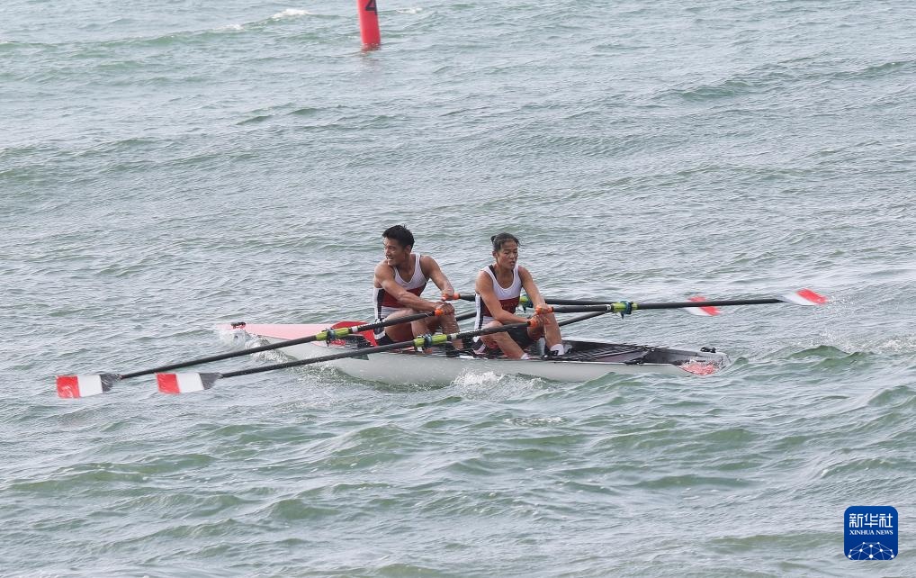 当日,第十五届全国运动会海岸赛艇混合双人双桨决赛在广东阳江举行。