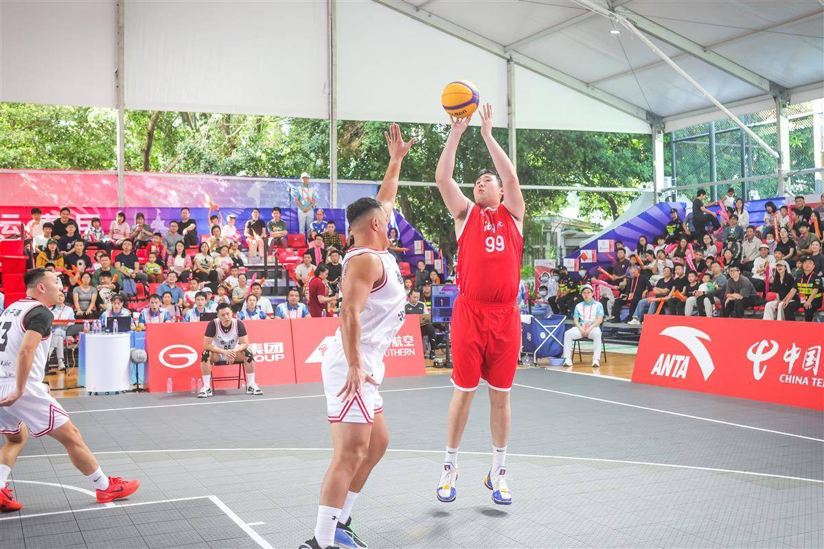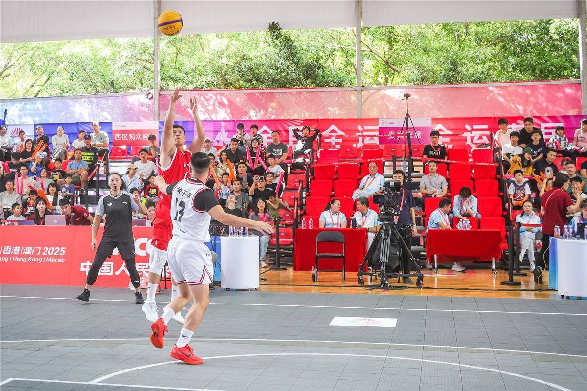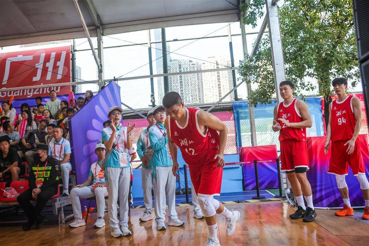 11月16日,广州天河体育中心篮球城,在十五运群众比赛三人篮球赛场,36岁的中南民族大学体育教师陈佳贺(12号)作为老大哥,和队友一起为湖北而战。当日中午湖北队21比15战胜香港队,十五运会群众三篮小组赛当日收官,以预选赛第一身份进入A组的湖北队最终四战全胜昂首晋级淘汰赛。
