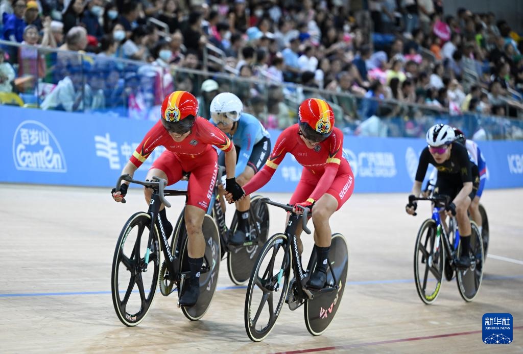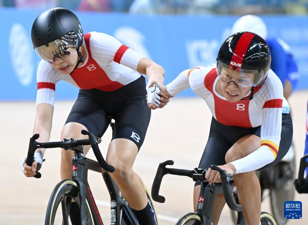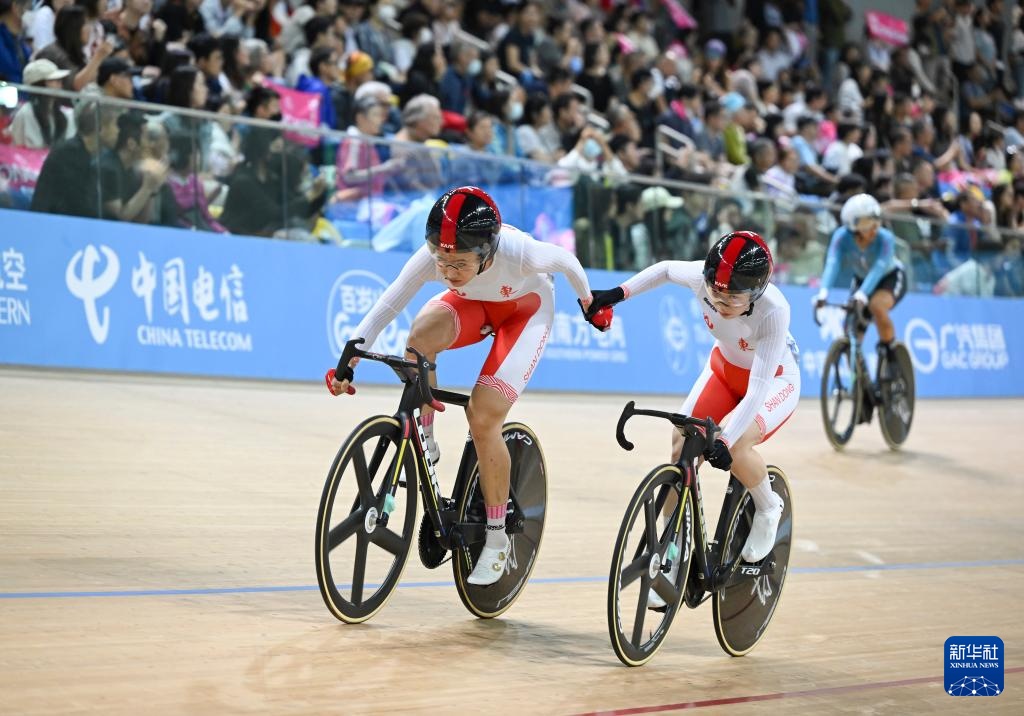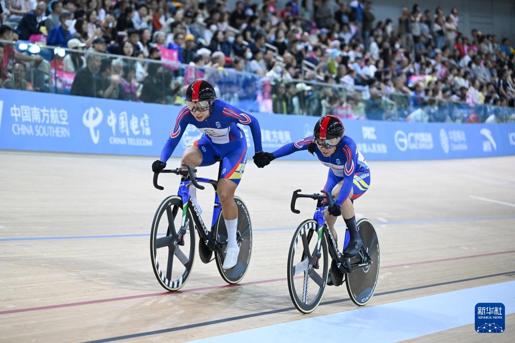 当日,第十五届全国运动会场地自行车女子麦迪逊赛决赛在香港举行。