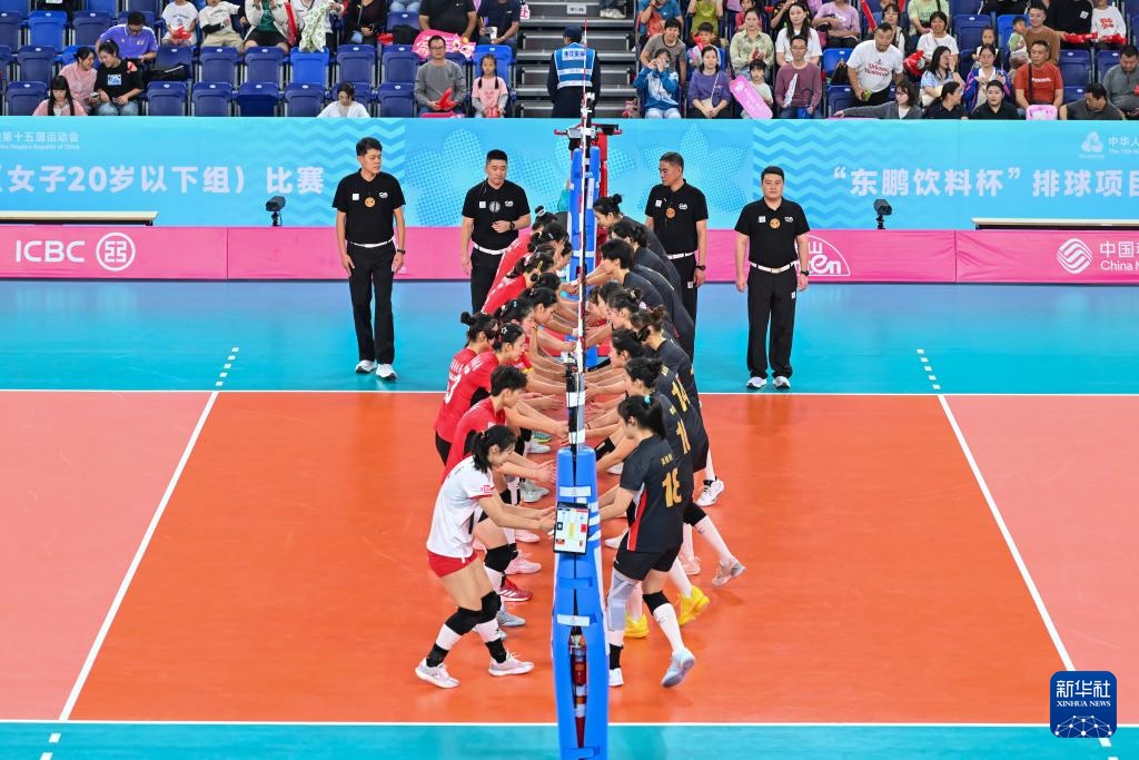 当日,在江门进行的第十五届全国运动会排球女子20岁以下组1/4交叉赛中,山东队3比0战胜福建队。