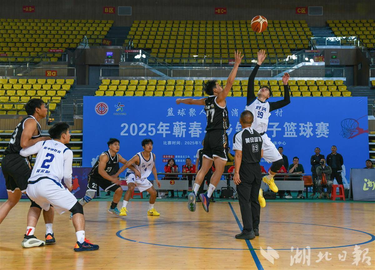 11月15日上午,2025蕲春县乡镇男子篮球赛在该县奥体中心开幕,比赛现场哨声响起,精彩开场!