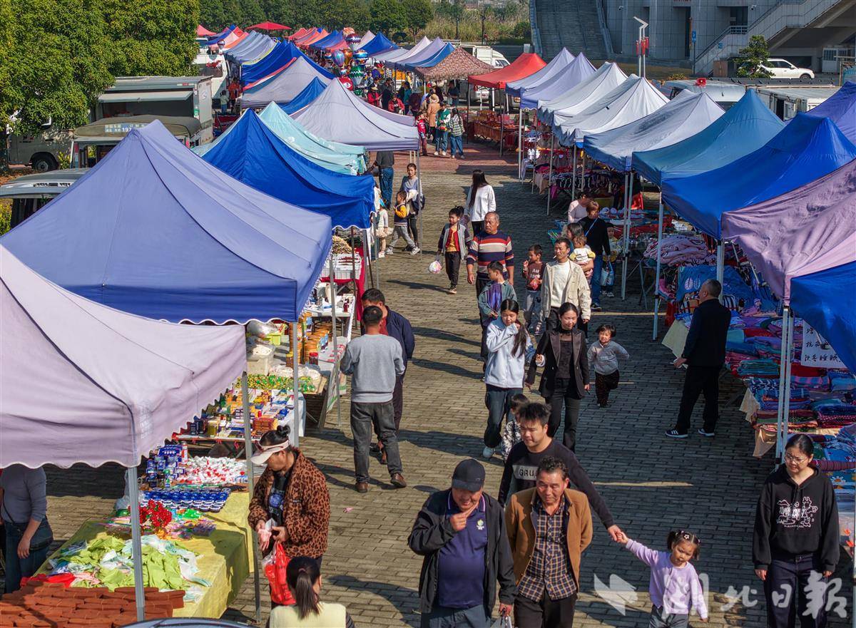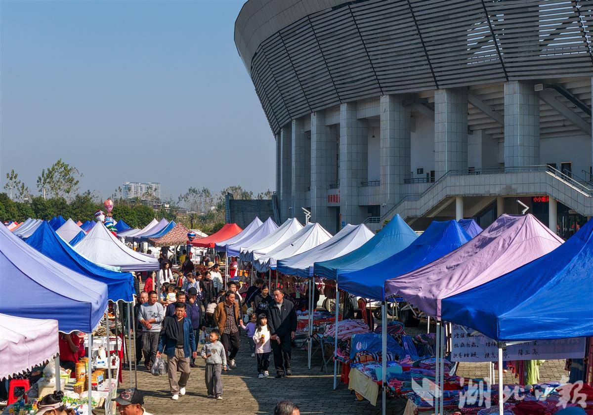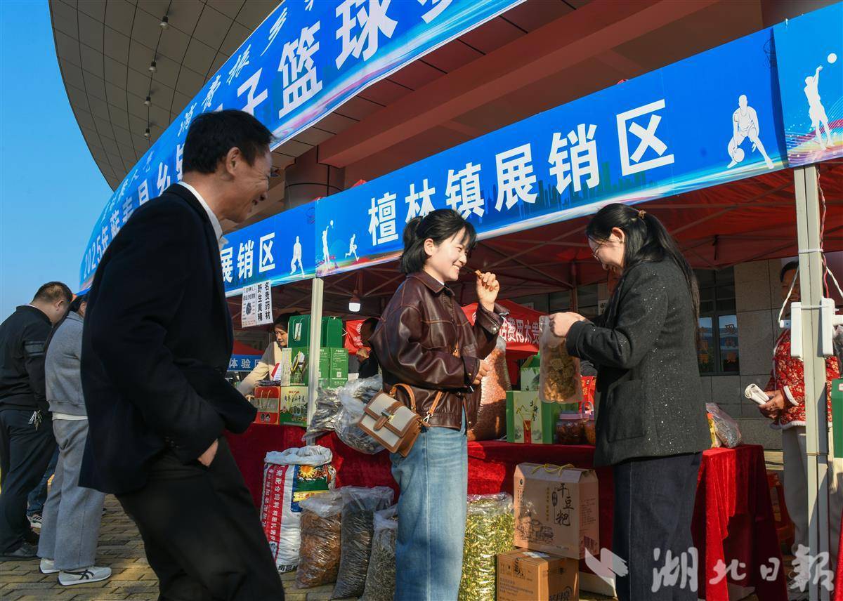 11月15日上午,2025蕲春县乡镇男子篮球赛在该县奥体中心开幕,场外以乡镇为单位的展区购销两旺。