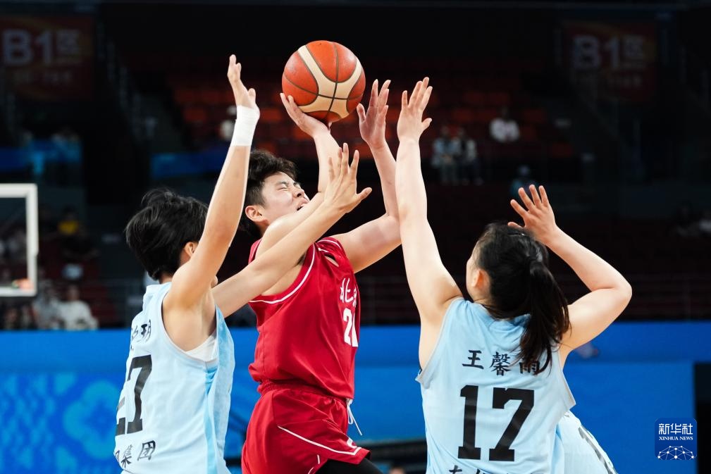 11月16日,北京队球员王雨桐(中)在比赛中上篮。