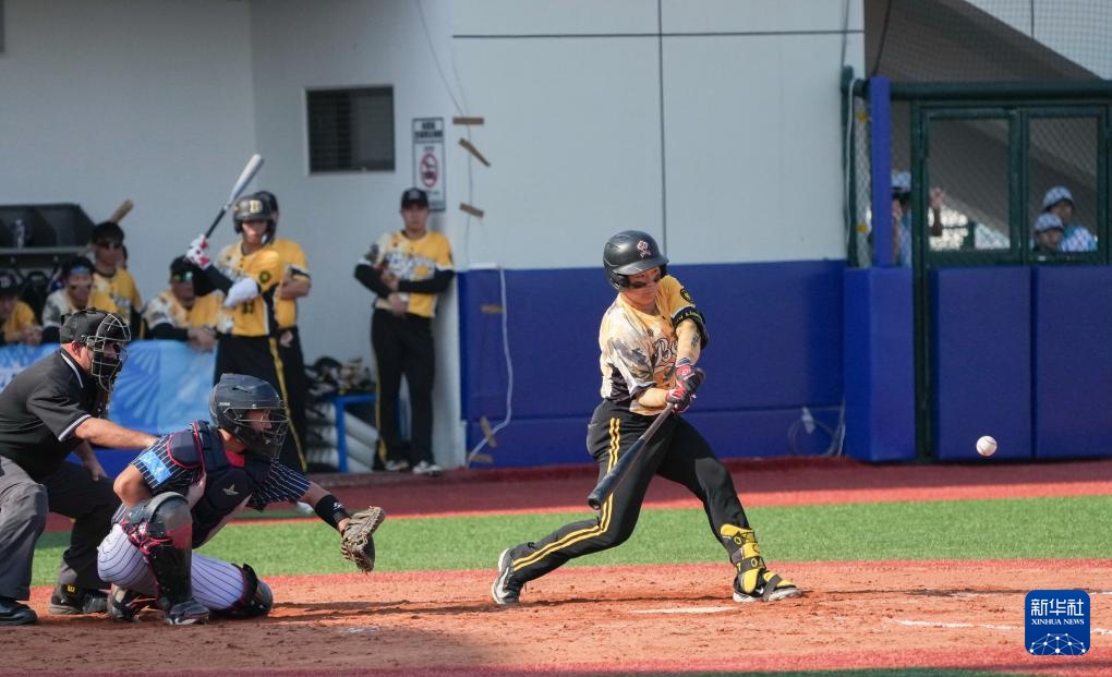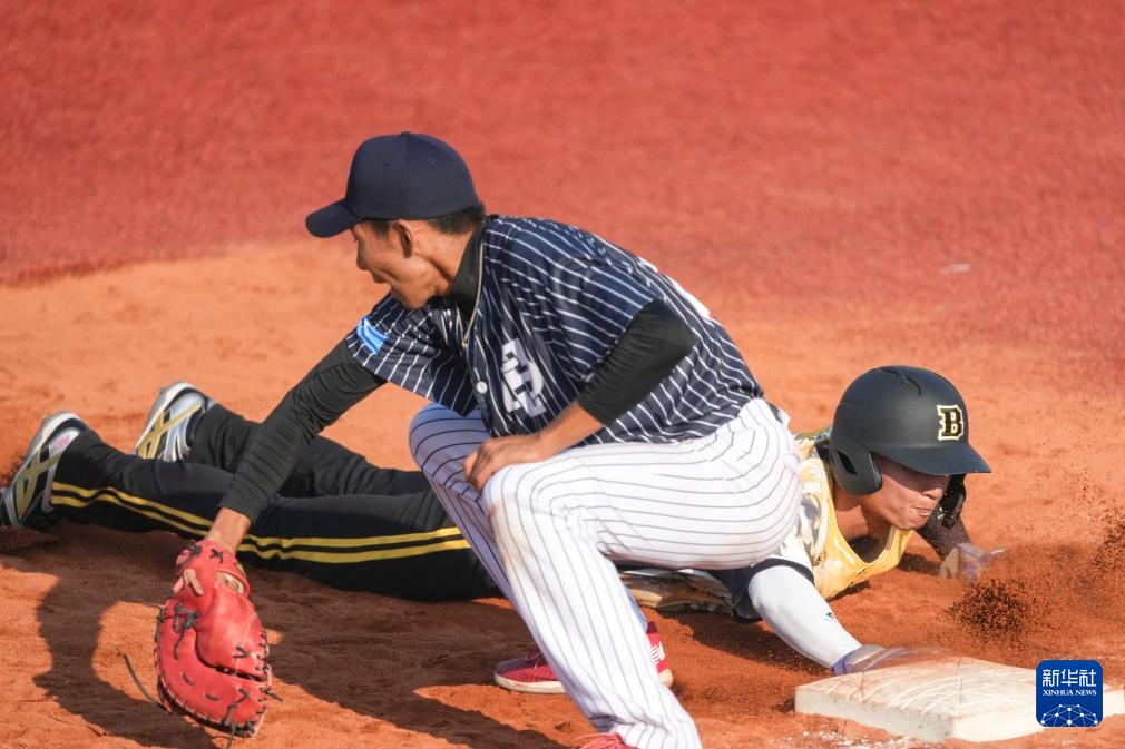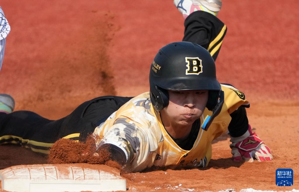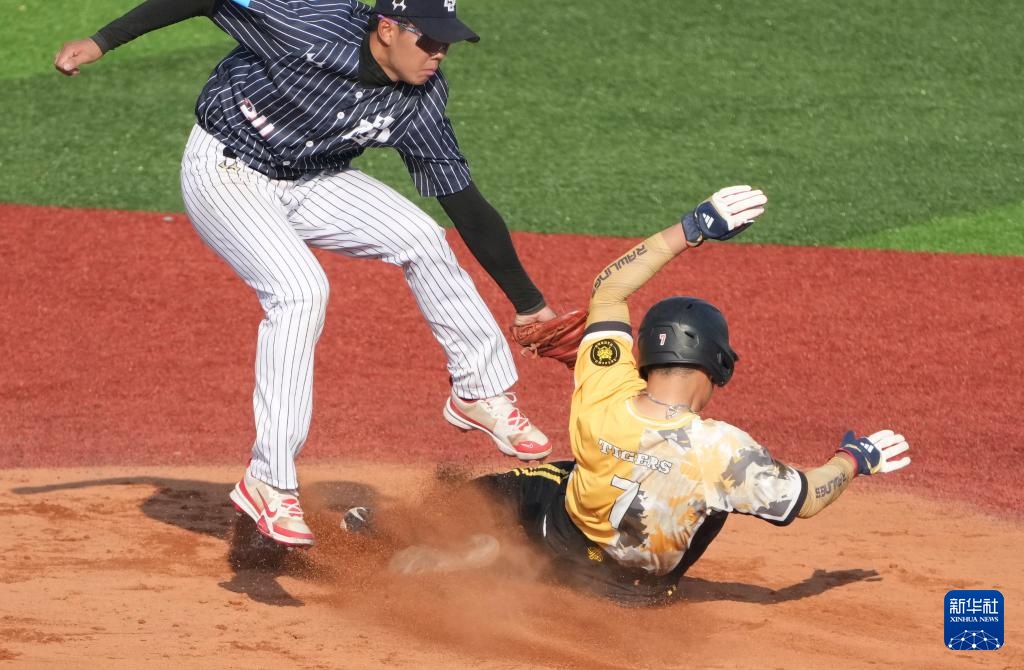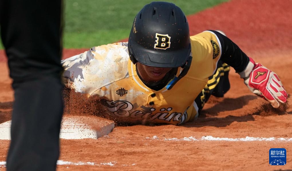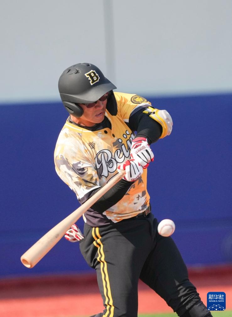 11月16日,北京队球员张嘉悦(右)在比赛中上垒。