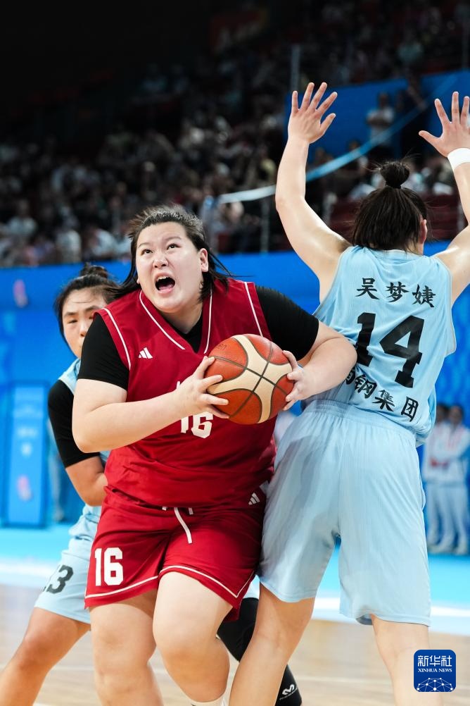 11月16日,北京队球员王雨桐(上)在比赛中上篮。