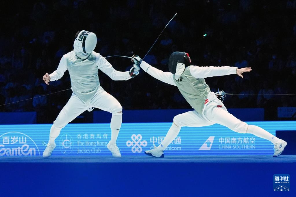 11月16日,福建队选手许杰(右)和香港队选手张家朗在比赛中。