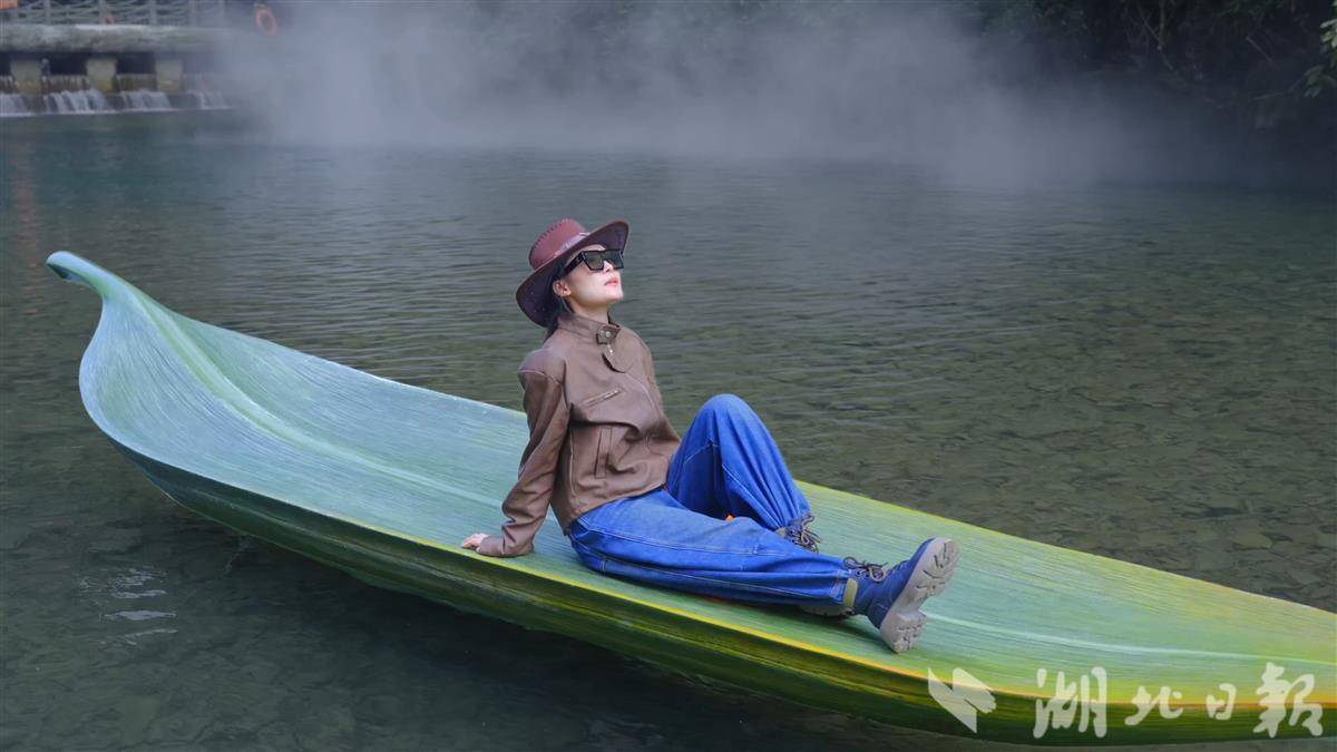 在景区核心的桃花码头,游客们有序排队,体验了期待已久的峡谷泛舟。当一叶叶木船行驶在平静无波的水面上时,经典的“悬浮”感扑面而来。由于水体过于清澈,船体仿佛脱离了水的浮力,悠然“悬浮”于空中,行驶在蓝天与崖壁的倒影之间。船工熟练地驾船,向游客们介绍着屏山的历史传说与生态保护故事。来自成都的李女士一家坐在船上,兴奋地不停拍照,她说:“这种感觉太神奇了!就像在太空漫步一样,孩子们都欢呼不已。这才是真正的大自然课堂。”