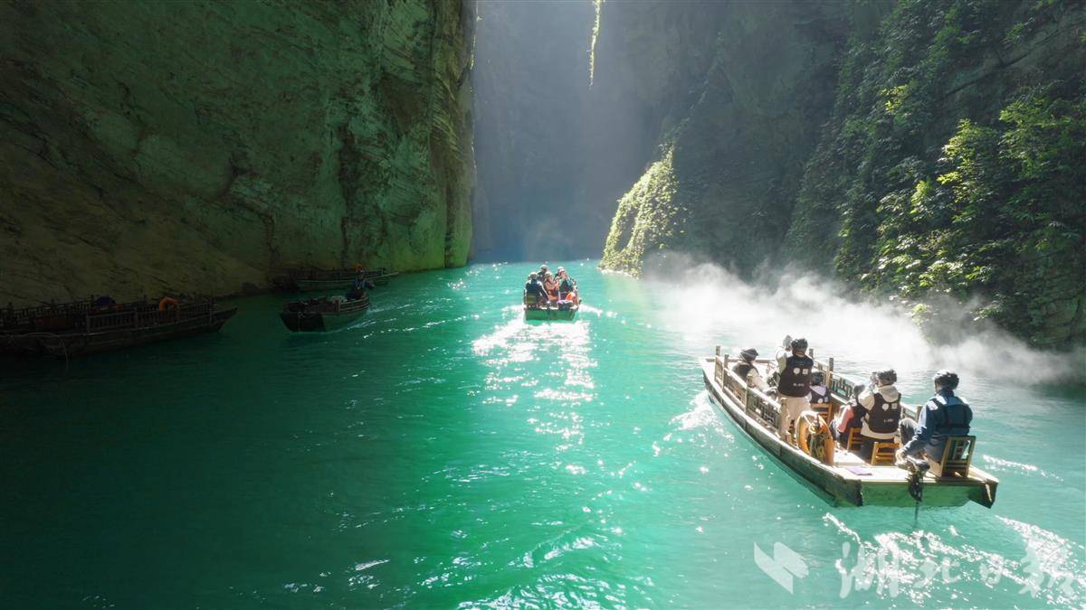 峡谷之间,一泓碧水蜿蜒流淌,水质清澈剔透,因其极高的透明度以及河床矿物质对光线的折射,呈现出一种梦幻般的翡翠色泽,“空中浮舟”奇景毫无保留地展现在众人面前。一位来自广州的自驾游王先生惊叹道:“我从没见过这么绿、这么清的水,就像一块巨大的、流动的宝玉镶嵌在峡谷里。照片完全无法还原它十分之一的美!”