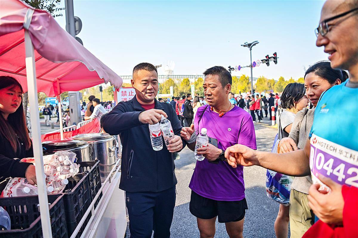 11月16日, 2025光谷马拉松在武汉东湖高新区鸣枪开跑,13000余名选手从华中科技大学出发。爱心“送水哥”——金贵平带领公司4名员工,煮了两大桶绿豆汤和制作了300碗冰粉,另加300余瓶矿泉水,在半马终点选手出口处摆摊为选手们送清凉。