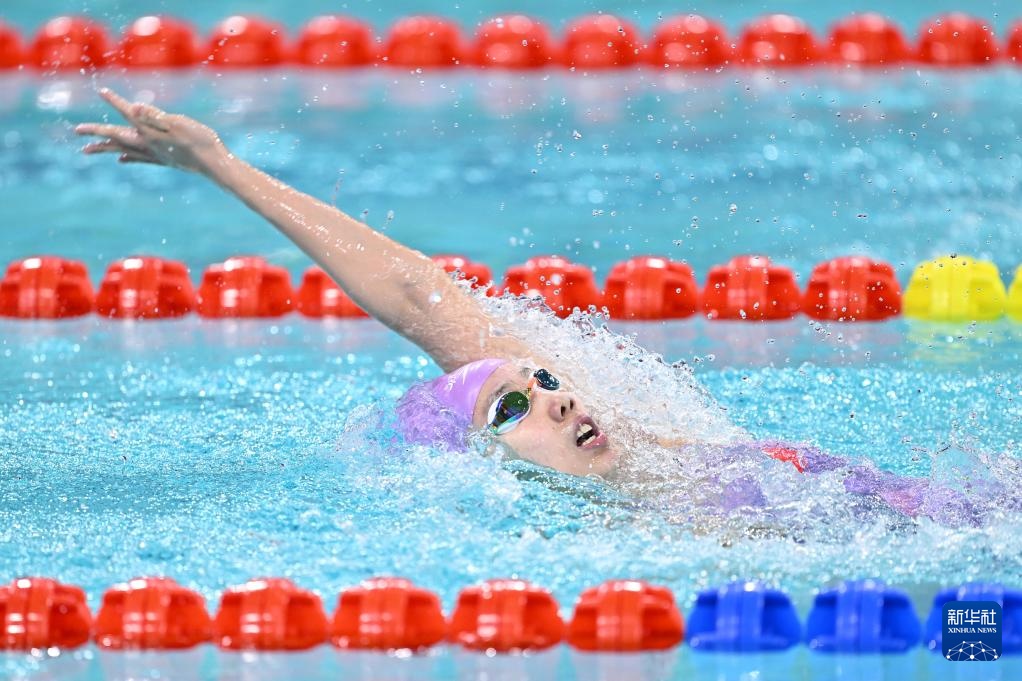 当日,第十五届全国运动会游泳女子200米仰泳决赛在深圳举行。