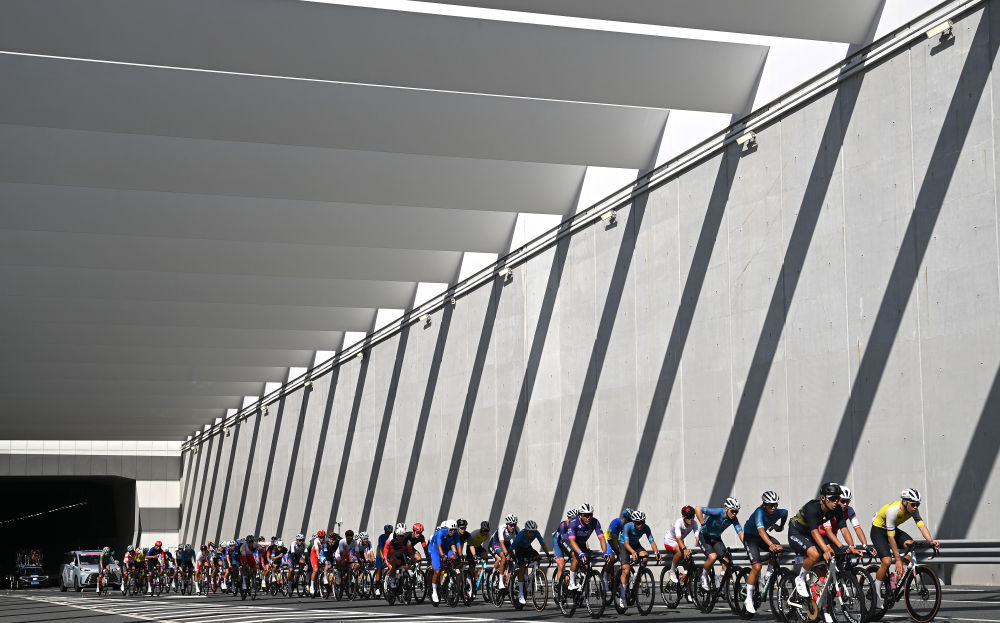 11月8日,在第十五届全国运动会公路自行车男子个人赛决赛中,参赛选手在港珠澳大桥骑行。新华社记者 梁旭 摄