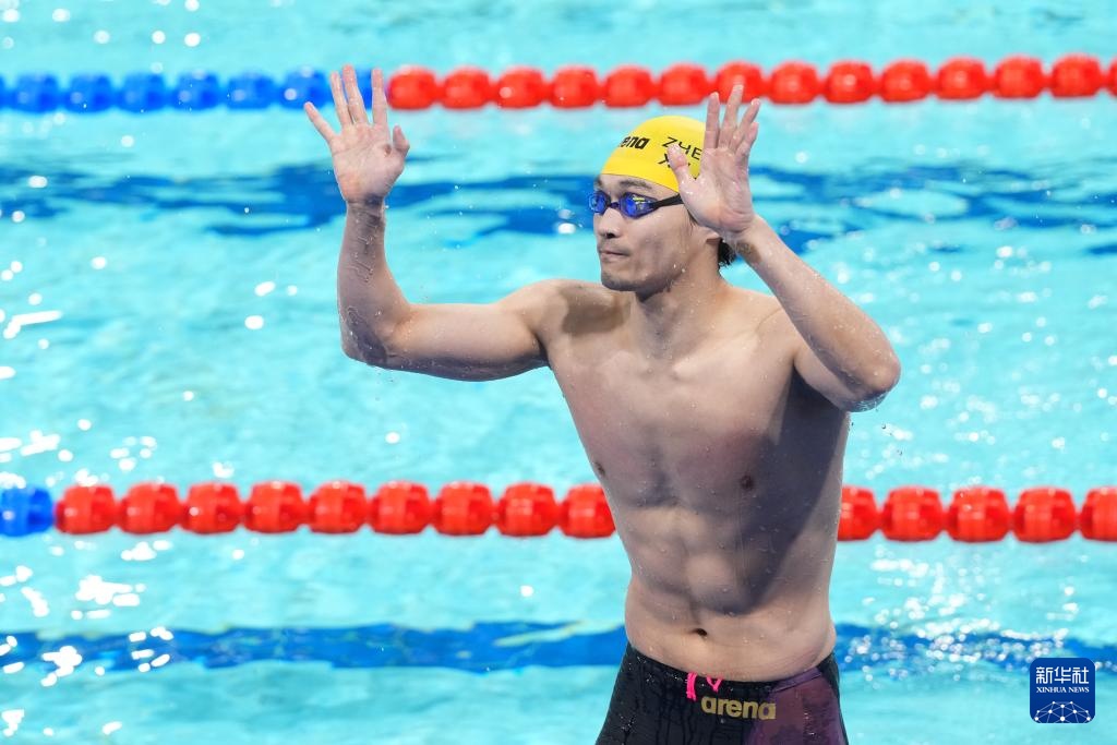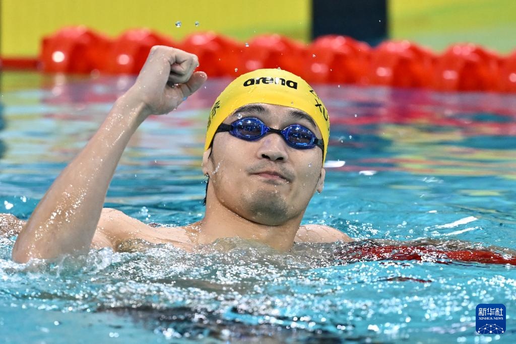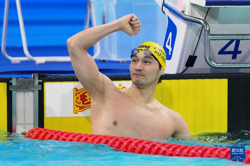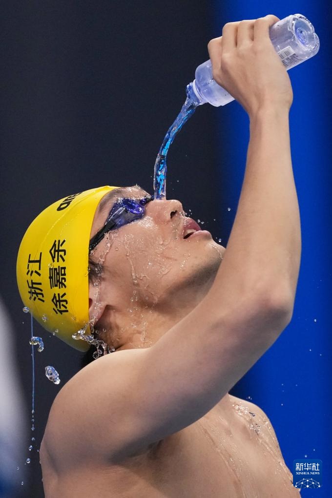 11月16日,浙江队选手徐嘉余在比赛后。他以24秒36的成绩晋级决赛并刷新全国纪录。