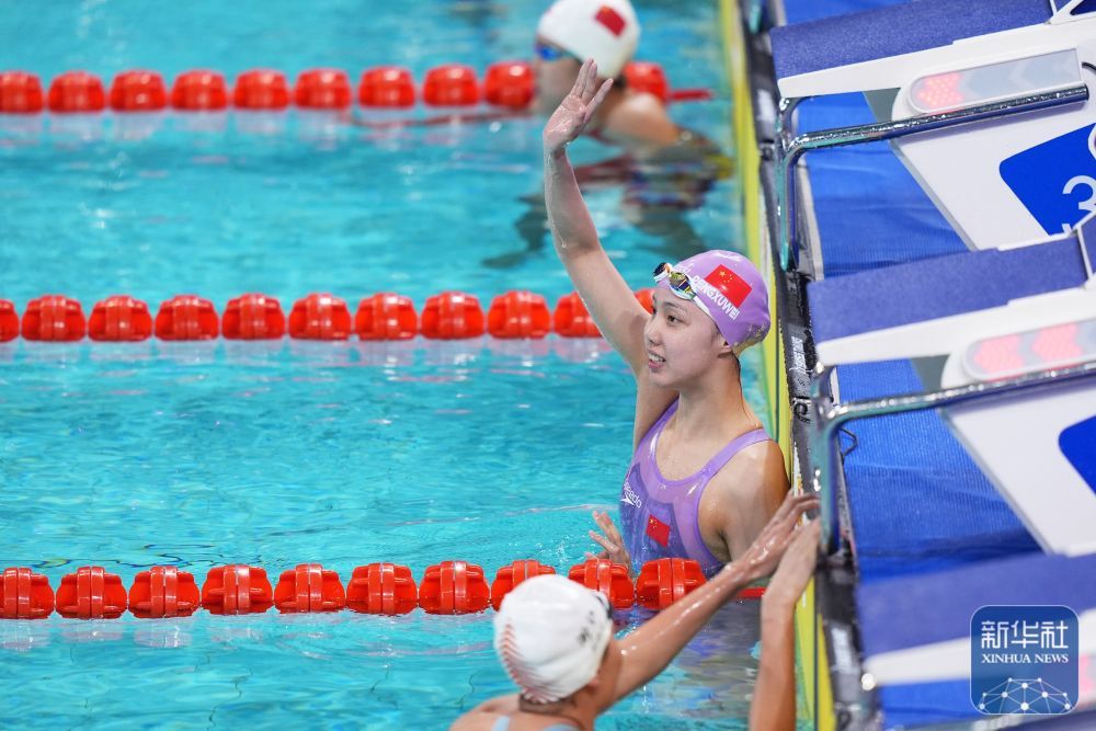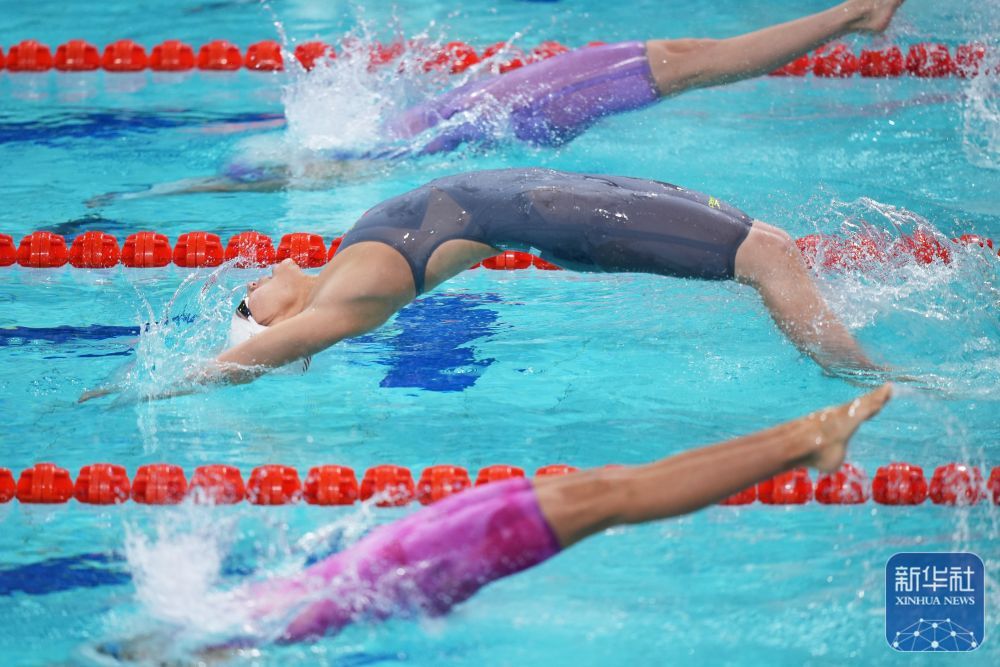 ↑浙江队选手柳雅欣在比赛中入水。新华社记者 丁增尼达 摄