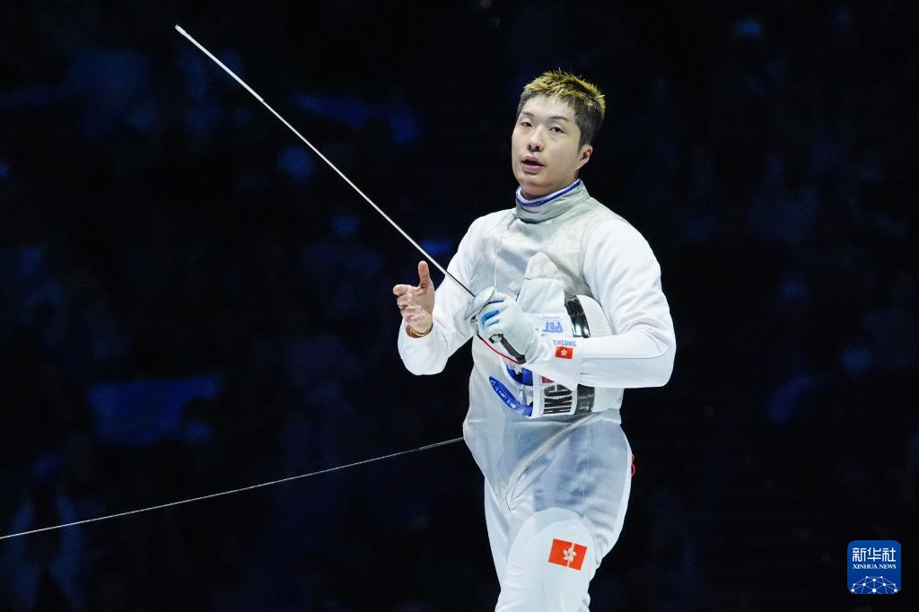 11月16日,香港队选手张家朗在比赛中庆祝得分。