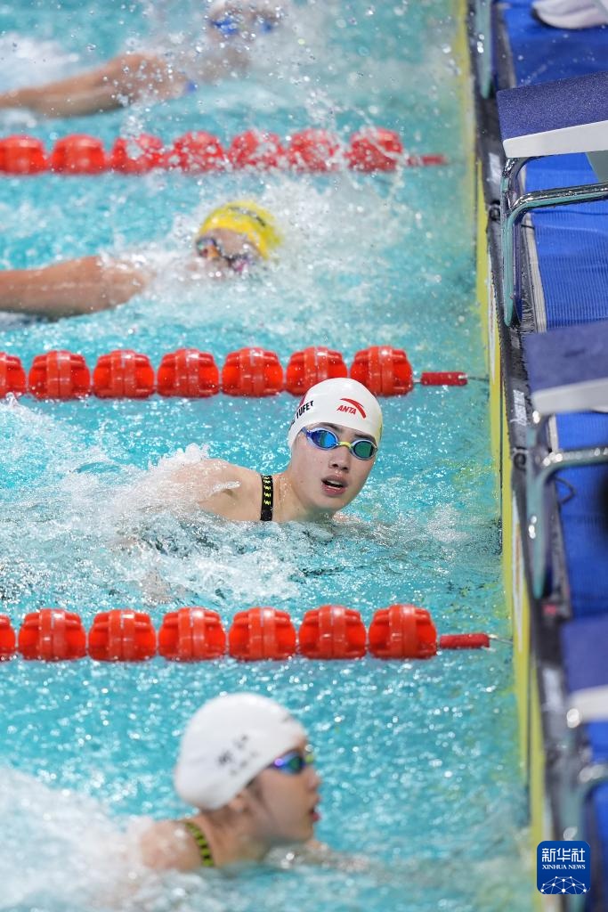 11月16日,江苏队选手张雨霏(下二)在比赛中触壁。她晋级决赛。