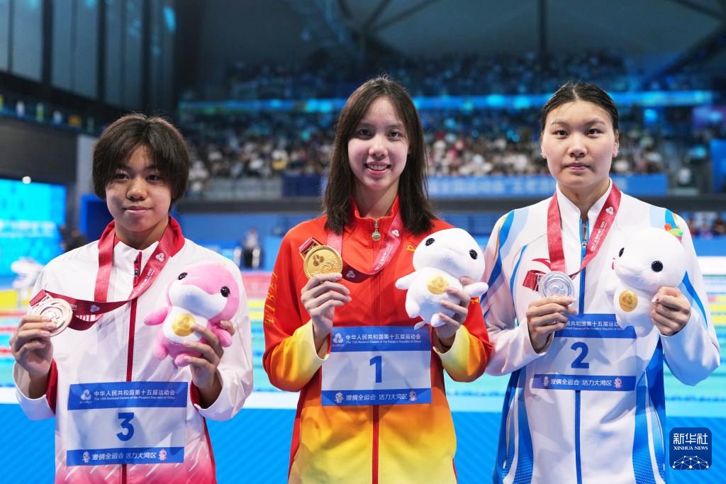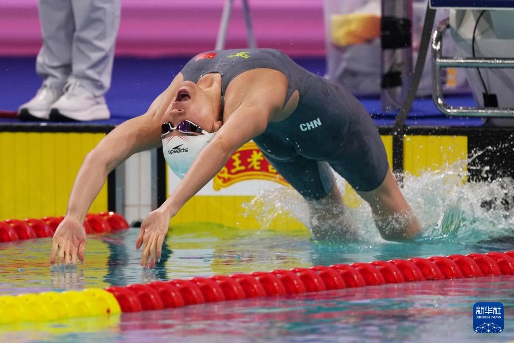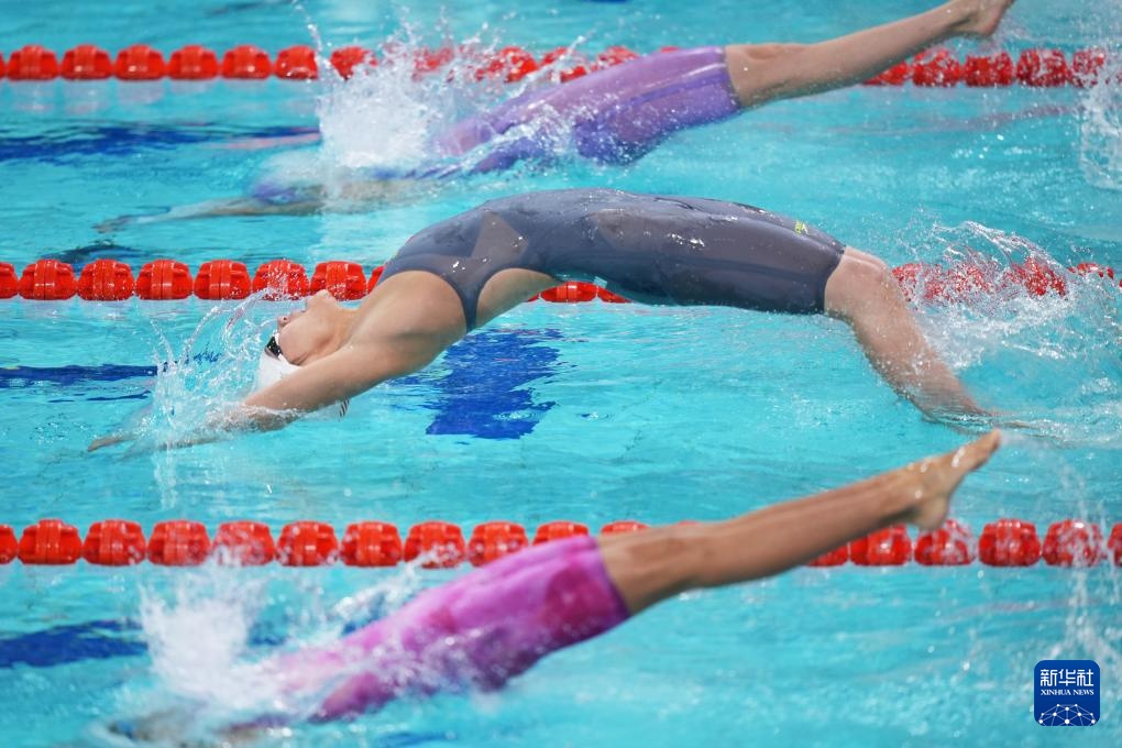 当日,第十五届全国运动会游泳女子200米仰泳决赛在深圳举行。