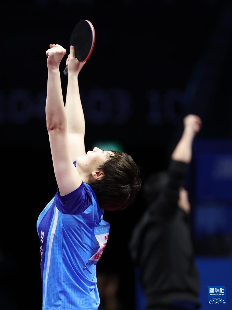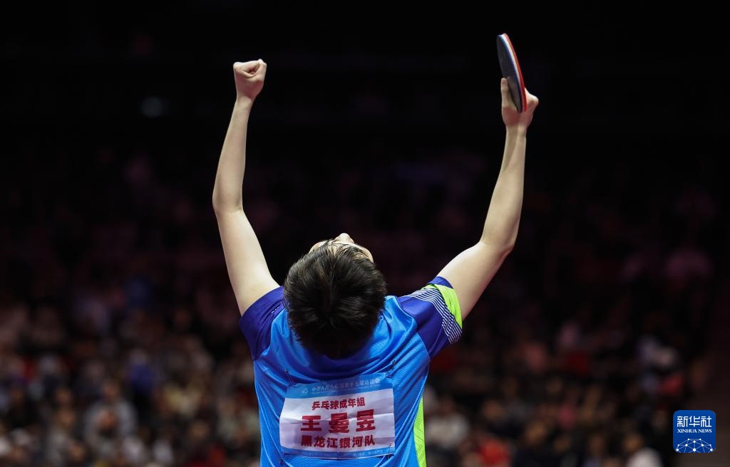 当日,在澳门举行的第十五届全国运动会乒乓球女子单打金牌赛中,黑龙江队选手王曼昱4比2战胜河北队选手孙颖莎,获得金牌。