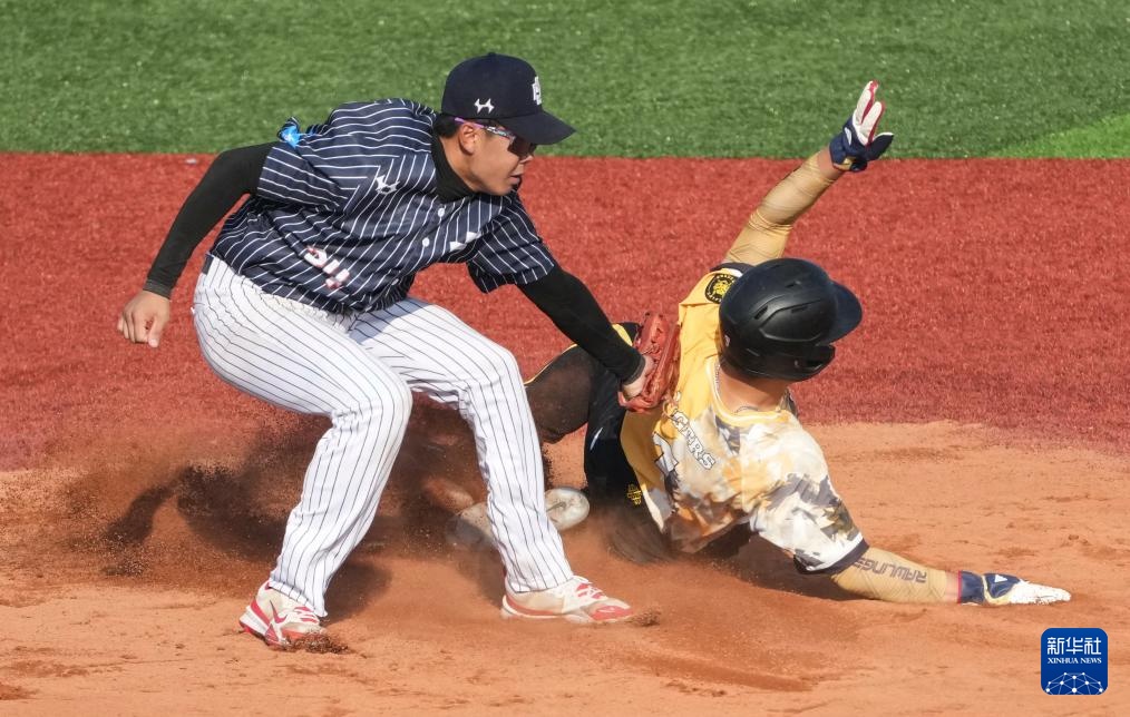 11月16日,北京队球员张嘉悦(右)在比赛中上垒。