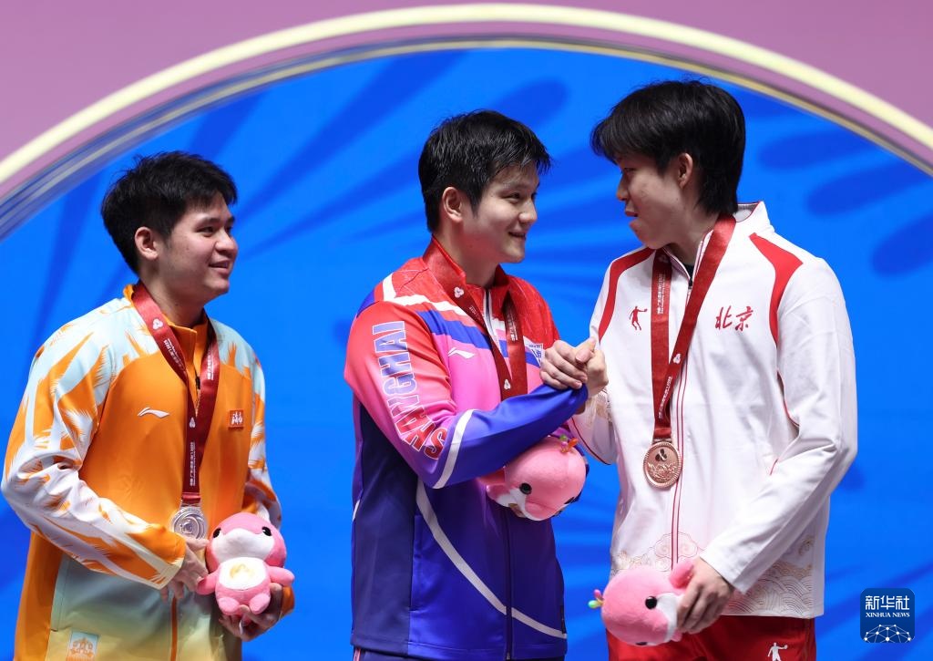 当日,在澳门举行的第十五届全国运动会乒乓球男子单打金牌赛中,上海队选手樊振东4比1胜海南队选手林诗栋,夺得冠军。