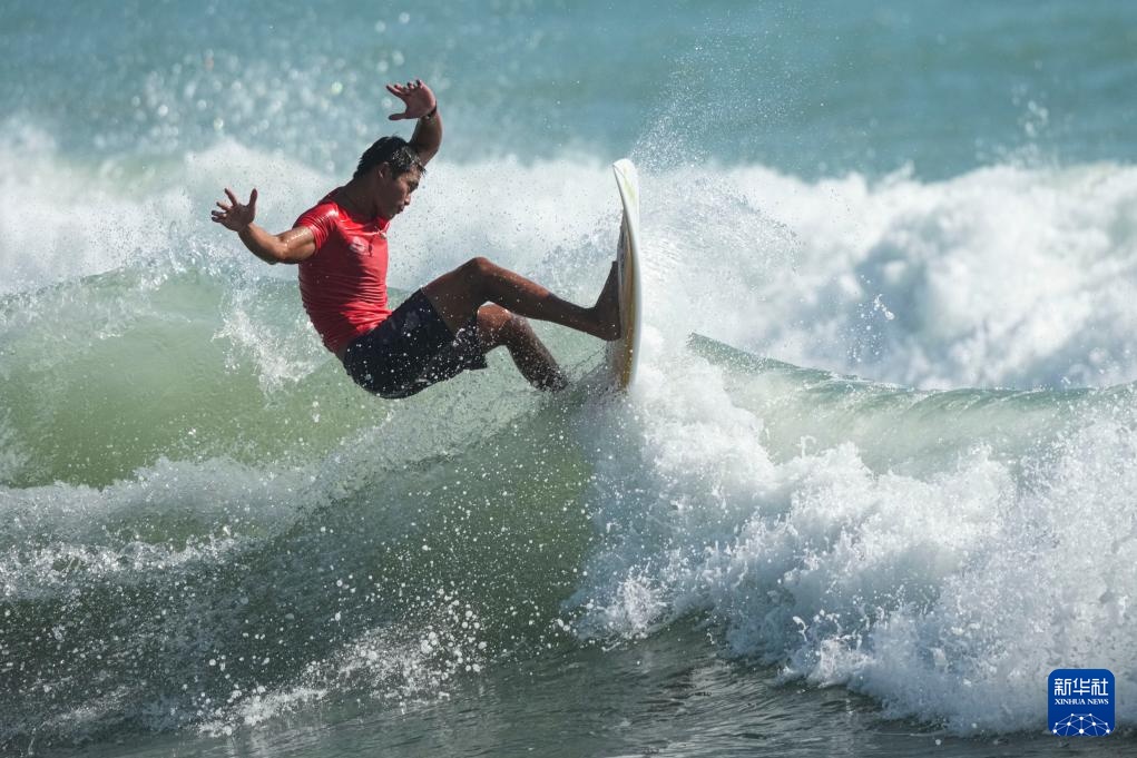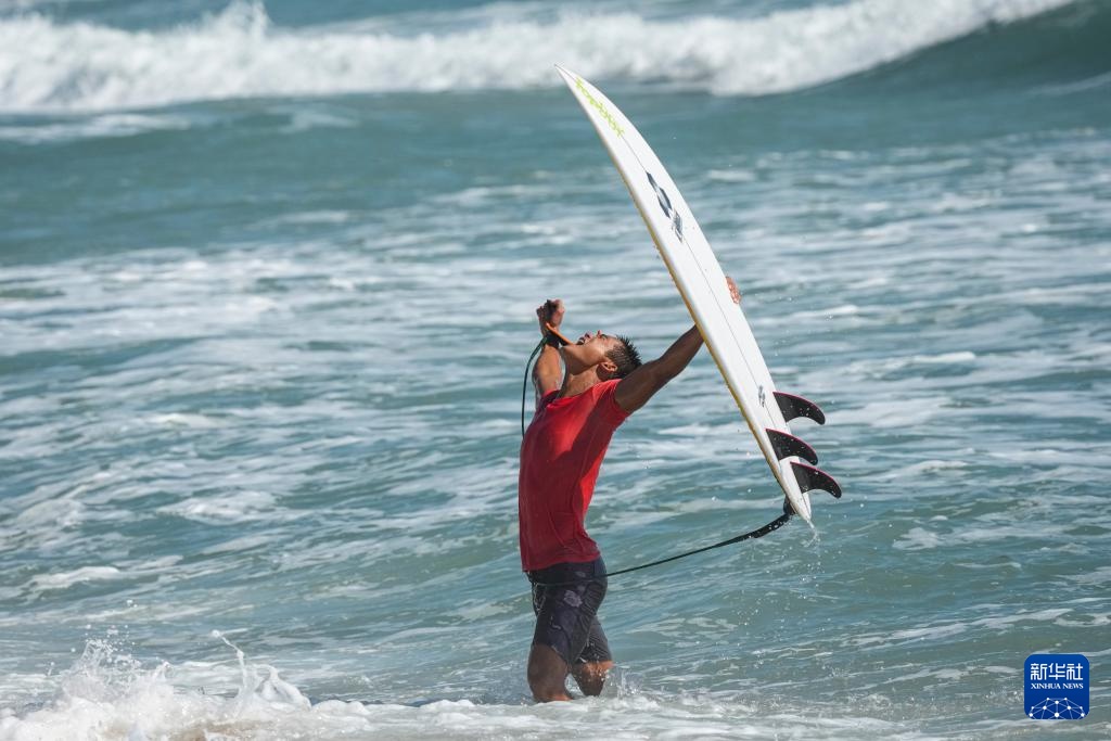 当日,在广东南澳举行的第十五届全国运动会冲浪男子短板决赛中,海南队选手吴世栋战胜河北队选手董子豪,夺得冠军。