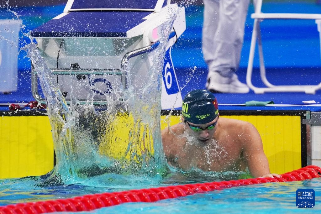 当日,第十五届全国运动会游泳男子100米蝶泳决赛在深圳举行。