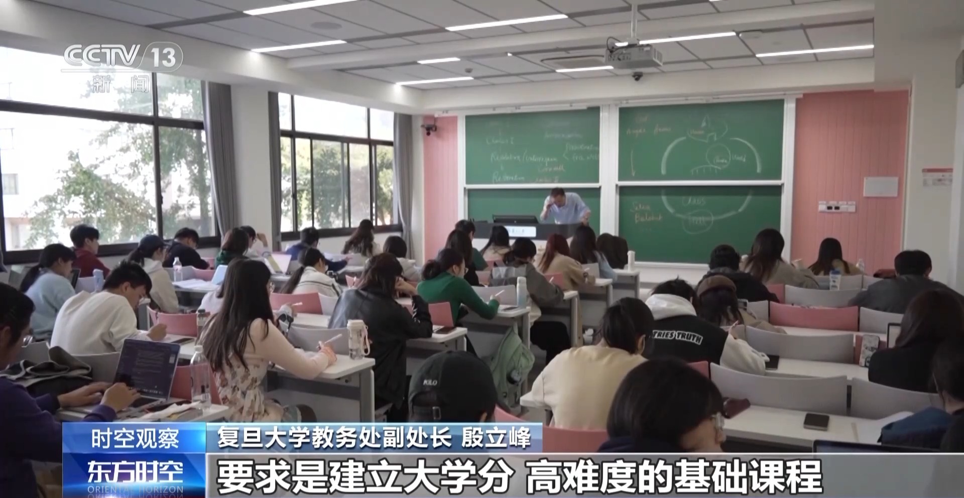 复旦大学教务处副处长 殷立峰:我们把课程的难度和密度进行了提升。要求建立大学分、高难度的基础课程,按照实验、实践、实训三个层次的课程体系,培养学生的实战能力。要打造“金课”,把一些“水课”给排除出去。