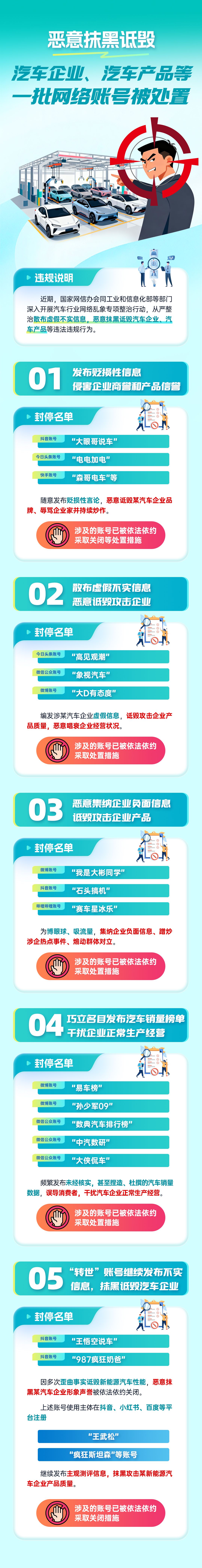 近期,国家网信办会同工业和信息化部等部门深入开展汽车行业网络乱象专项整治行动,从严整治散布虚假不实信息,恶意抹黑诋毁汽车企业、汽车产品等违法违规行为。