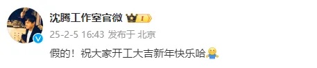 当天下午,沈腾工作室发文辟谣:“假的!祝大家开工大吉新年快乐哈”,否认恋情传闻。