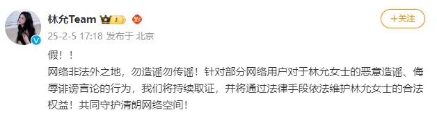 同时,林允工作室也发声辟谣: